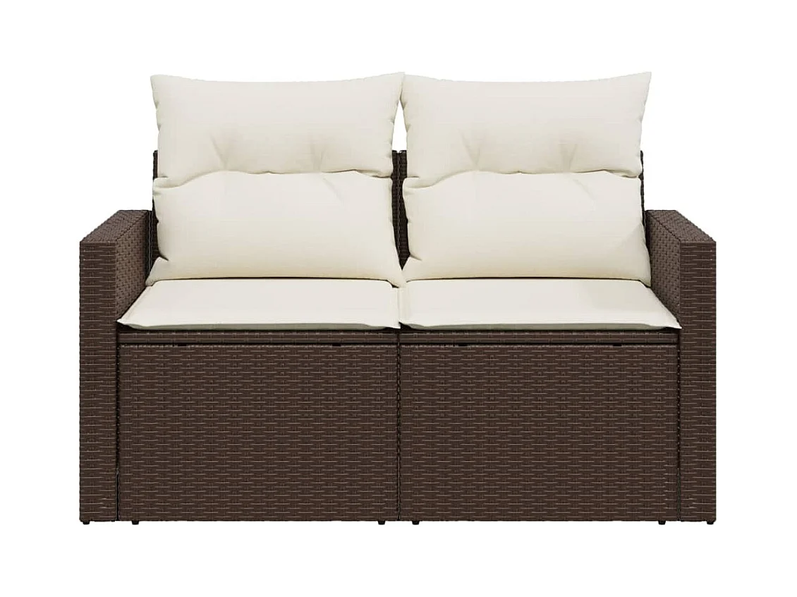 Sofá de jardim com almofadões 2 lugares vime PE castanho PT974930