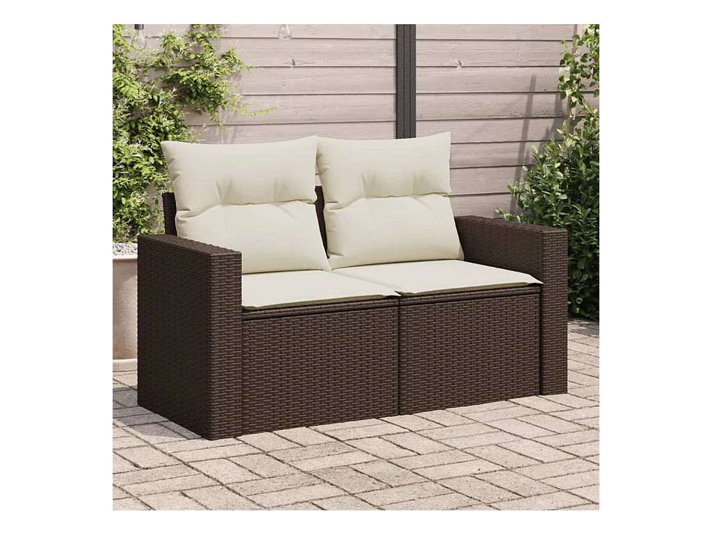 Sofá de jardim com almofadões 2 lugares vime PE castanho PT974930