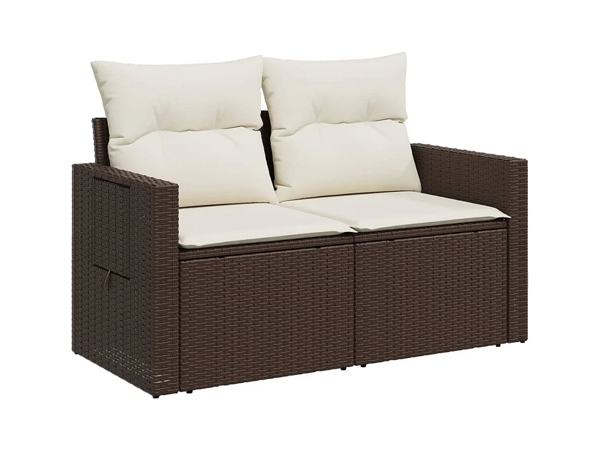 Sofá de jardim com almofadões 2 lugares vime PE castanho PT974930