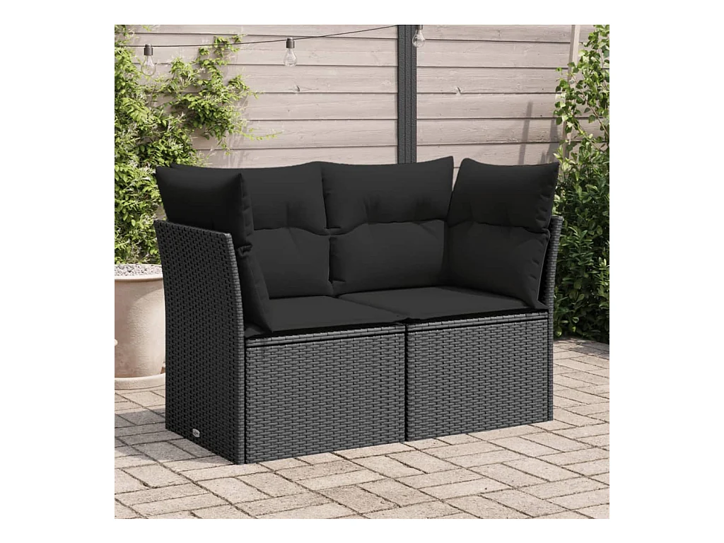 Sofá de jardim com almofadões 2 lugares vime PE preto PT894356
