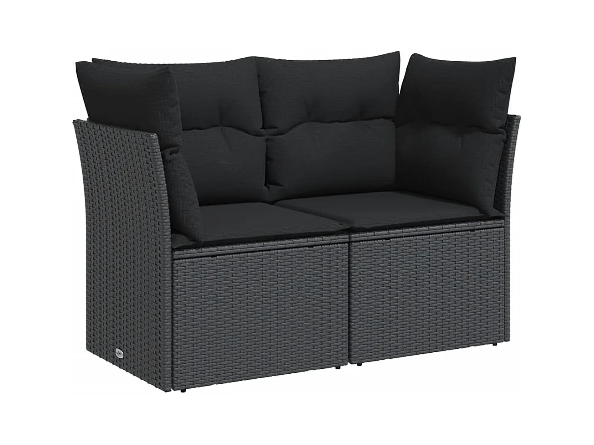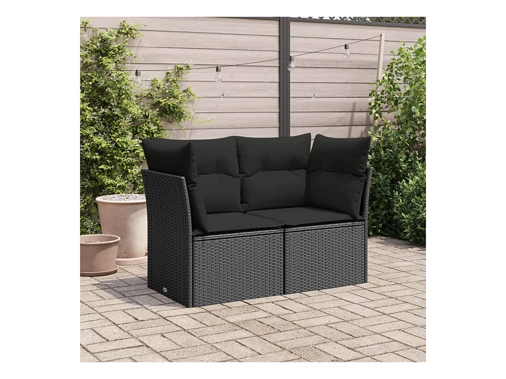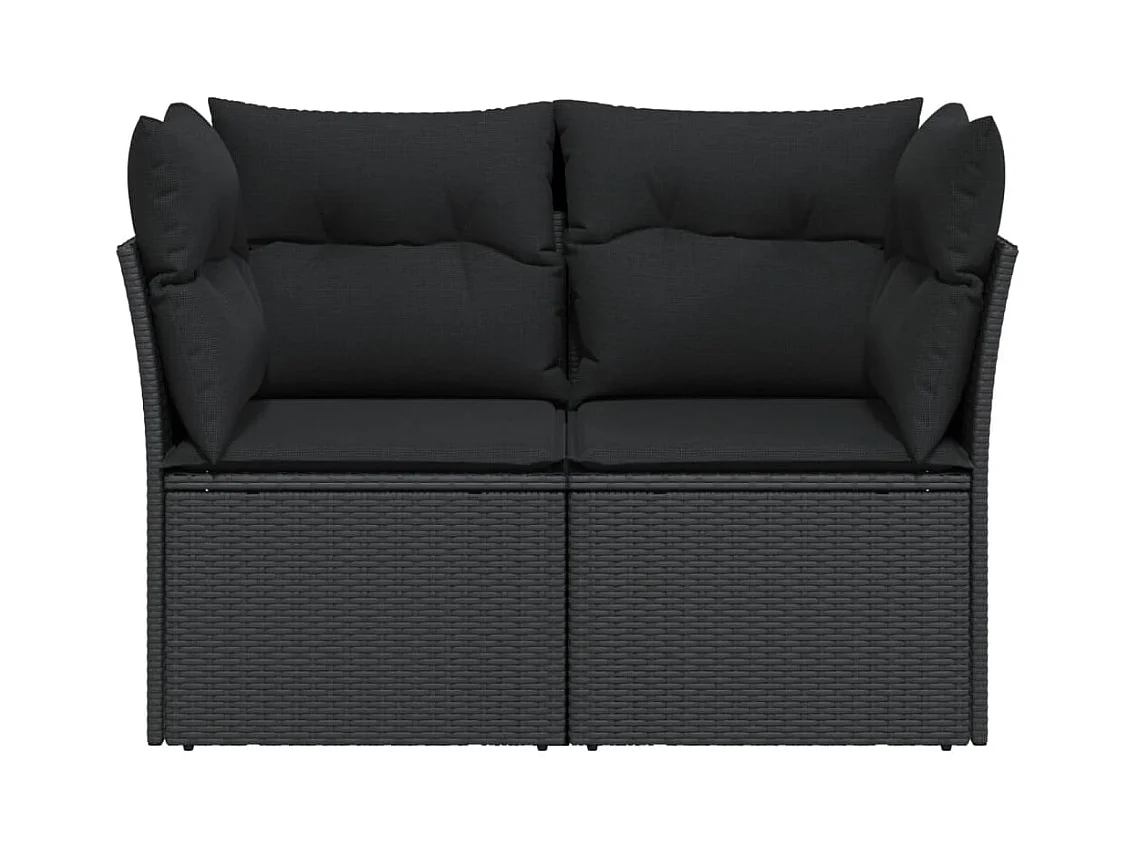 Sofá de jardim com almofadões 2 lugares vime PE preto
