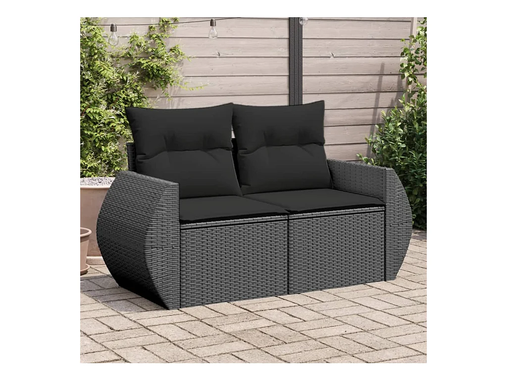 Sofá de jardim com almofadões 2 lugares vime PE preto PT364152