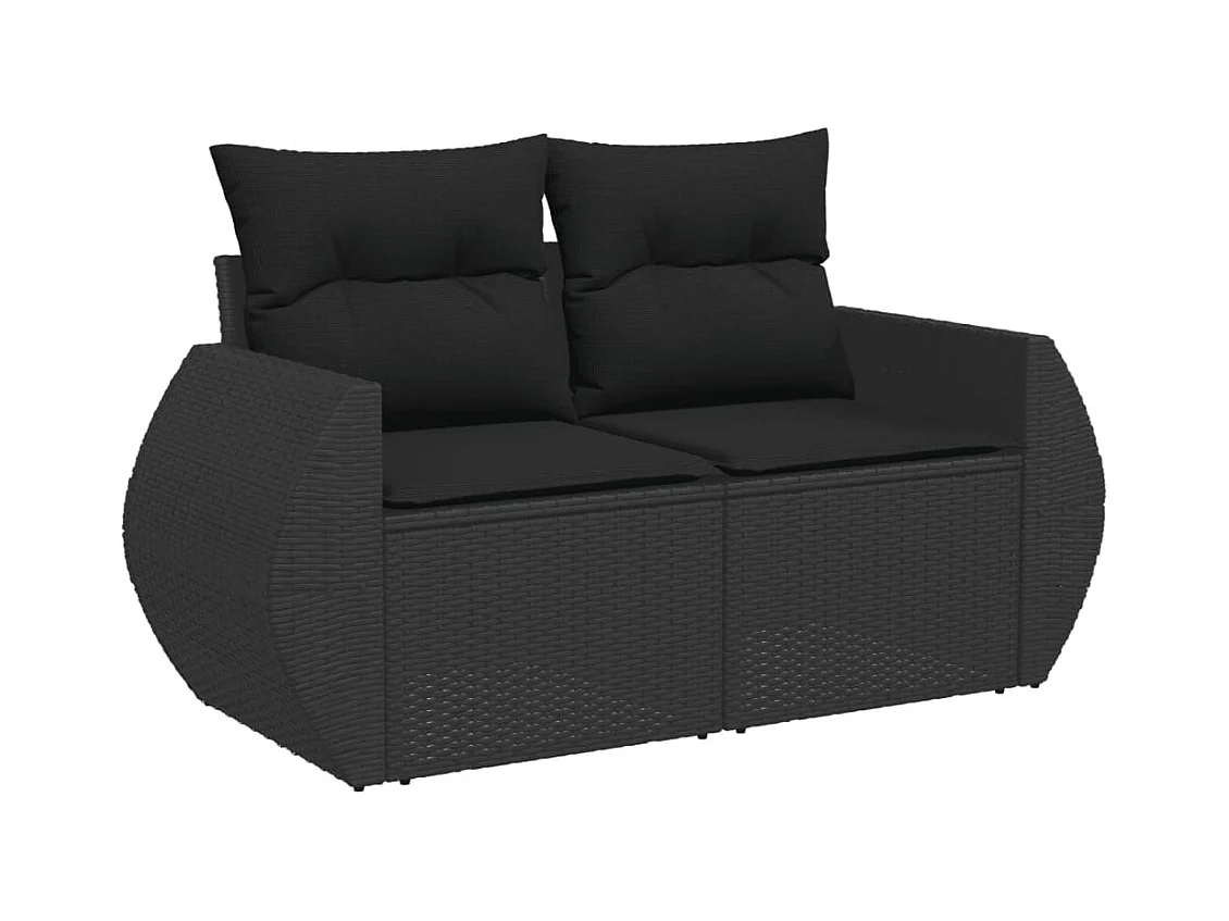 Sofá de jardim com almofadões 2 lugares vime PE preto PT129026
