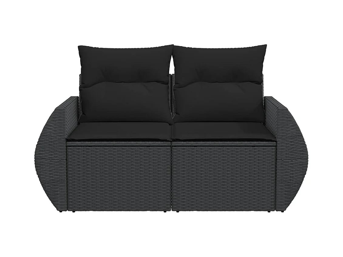 Sofá de jardim com almofadões 2 lugares vime PE preto PT129026