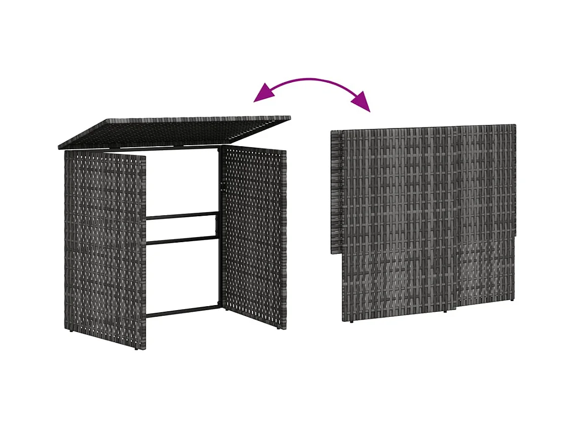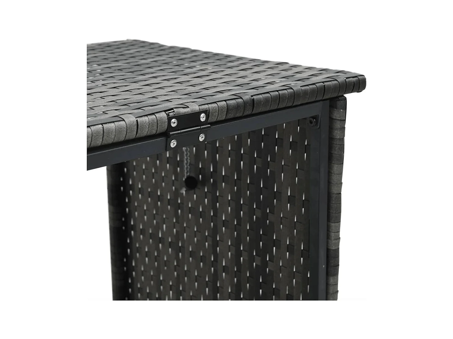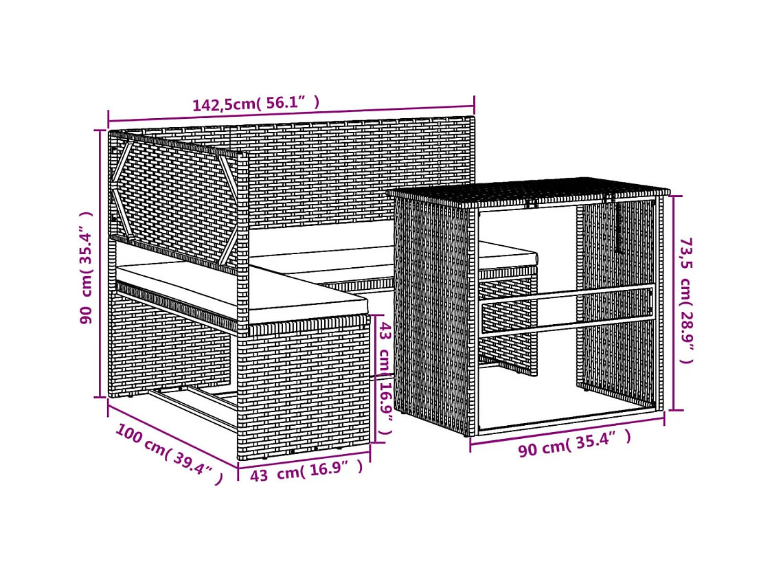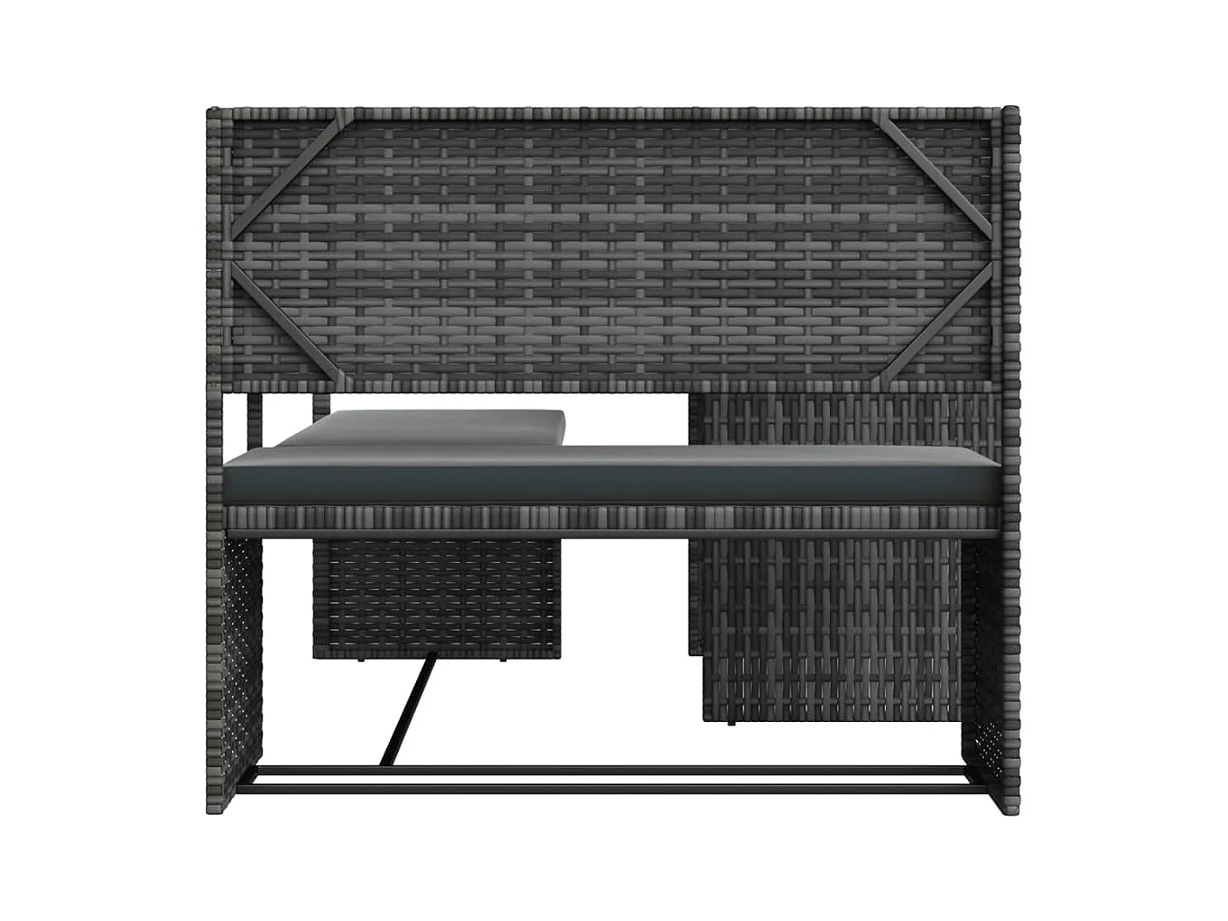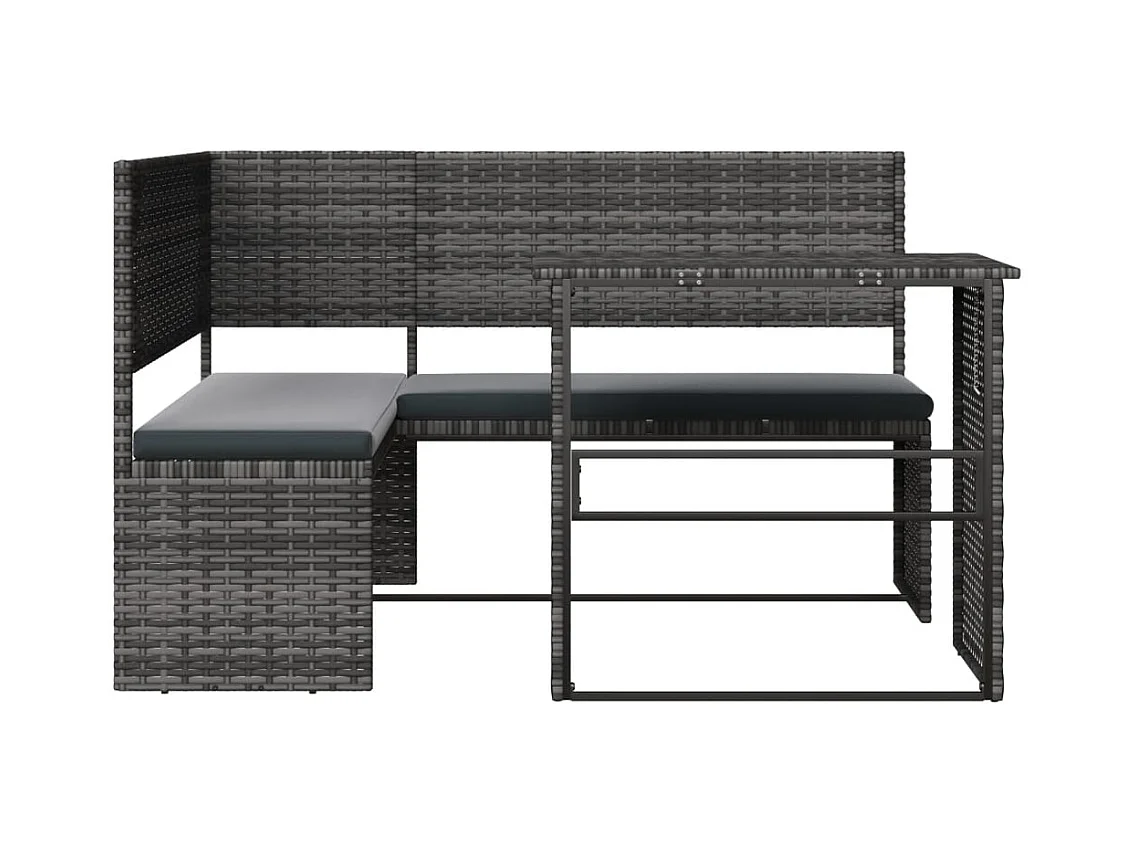 Sofá de jardim com mesa e almofadas cinza em forma de L