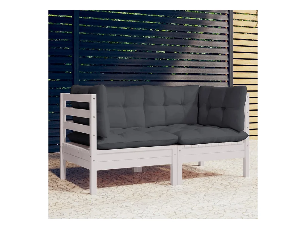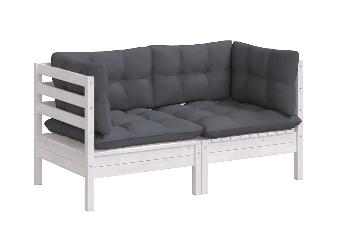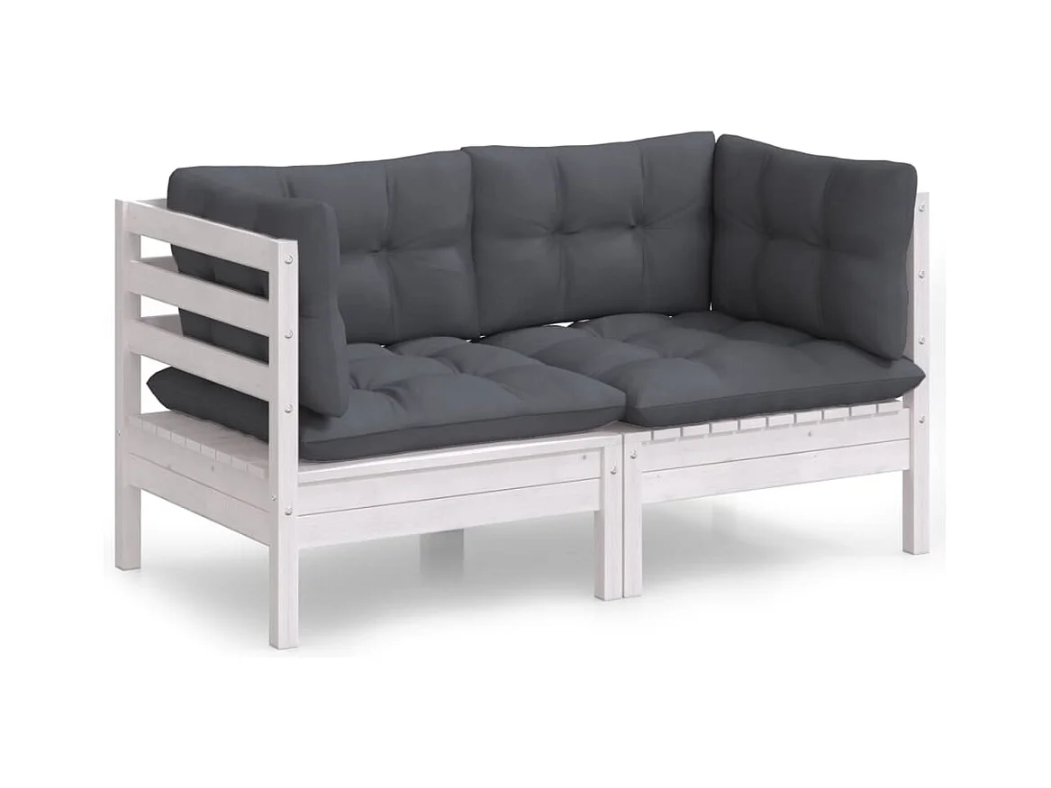 Sofá de jardim de 2 lugares com almofadas antracite Madeira de pinho