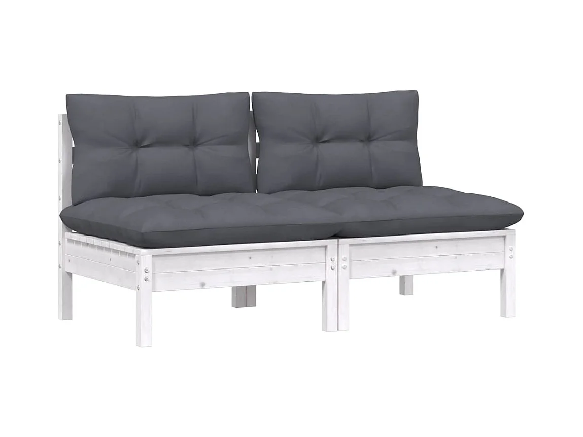 Sofá de jardim de 2 lugares com almofadas antracite Madeira de pinho