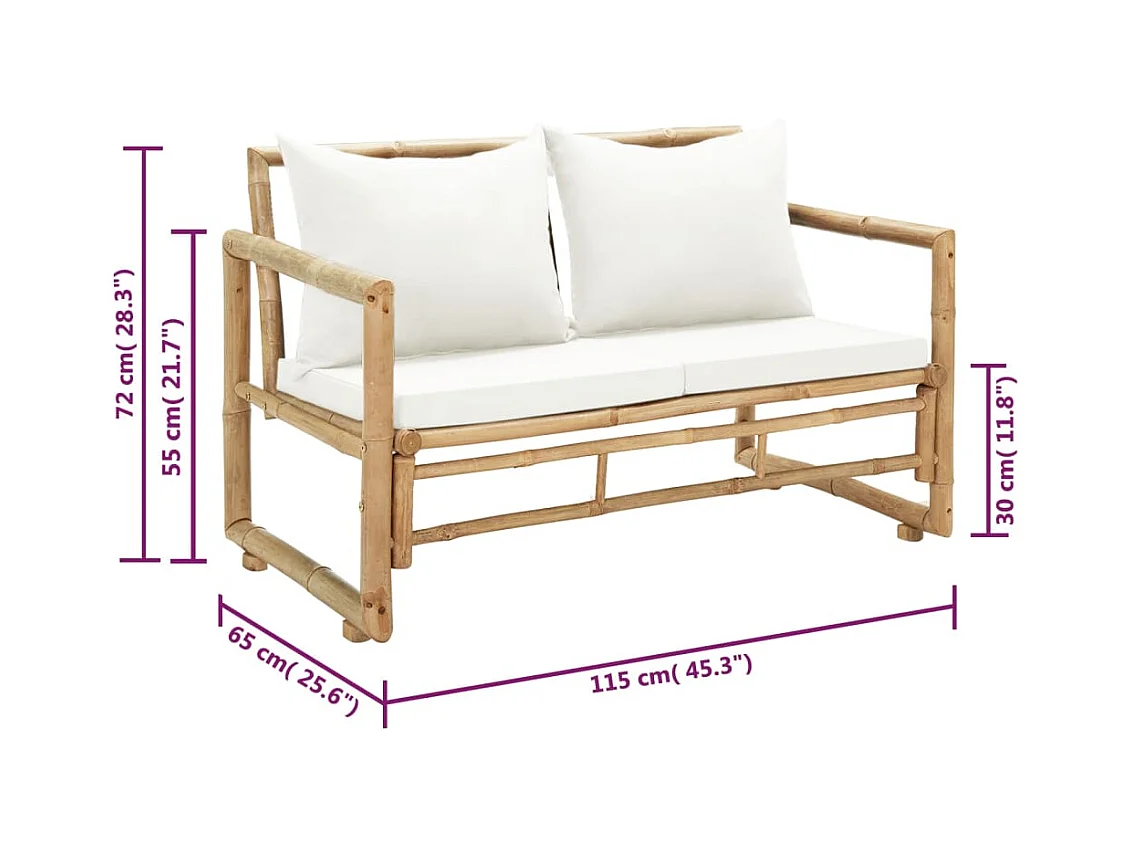 Sofá de jardim de 2 lugares com almofadas 115 x 65 x 72 cm bambu 02_0011856