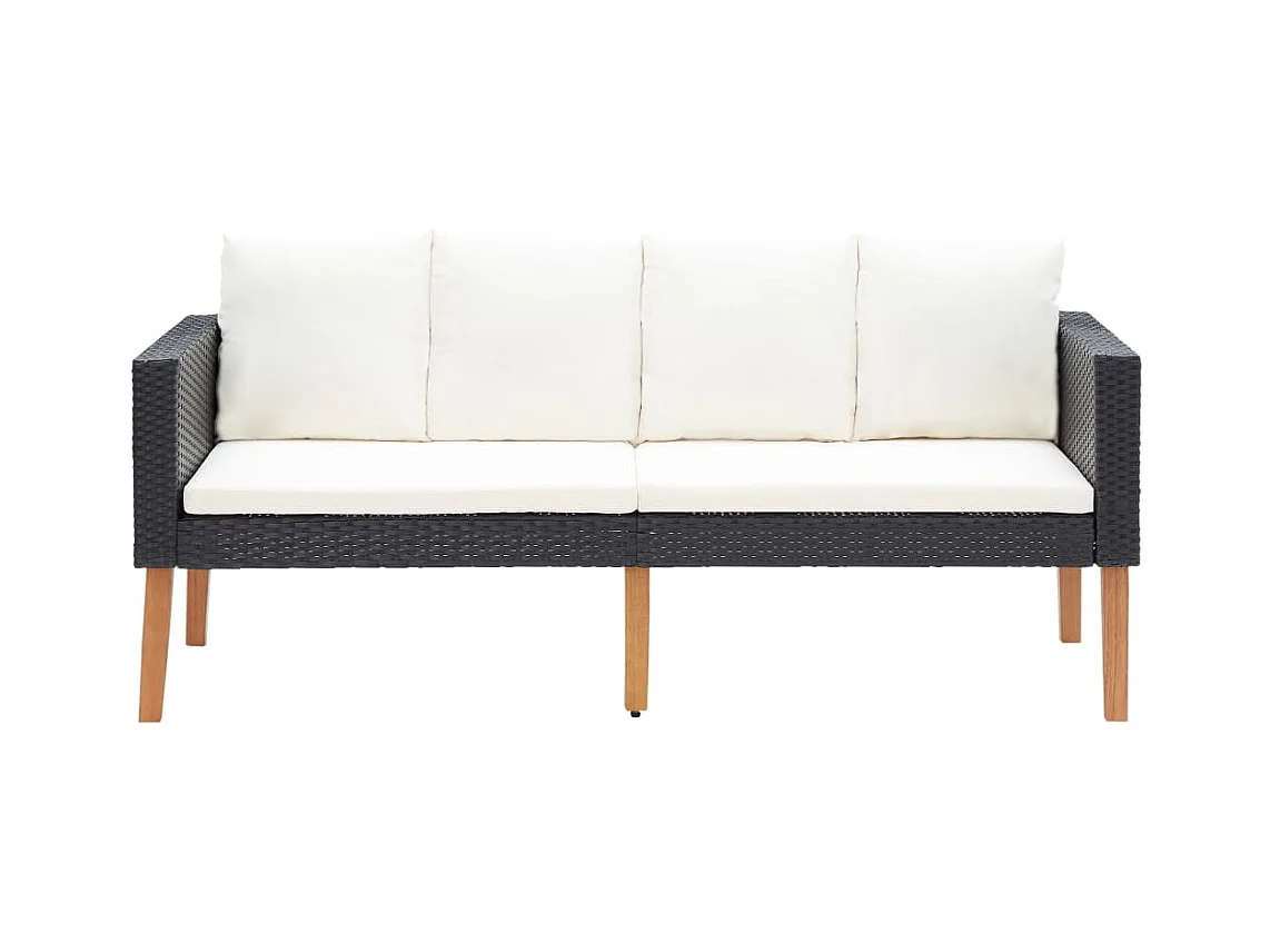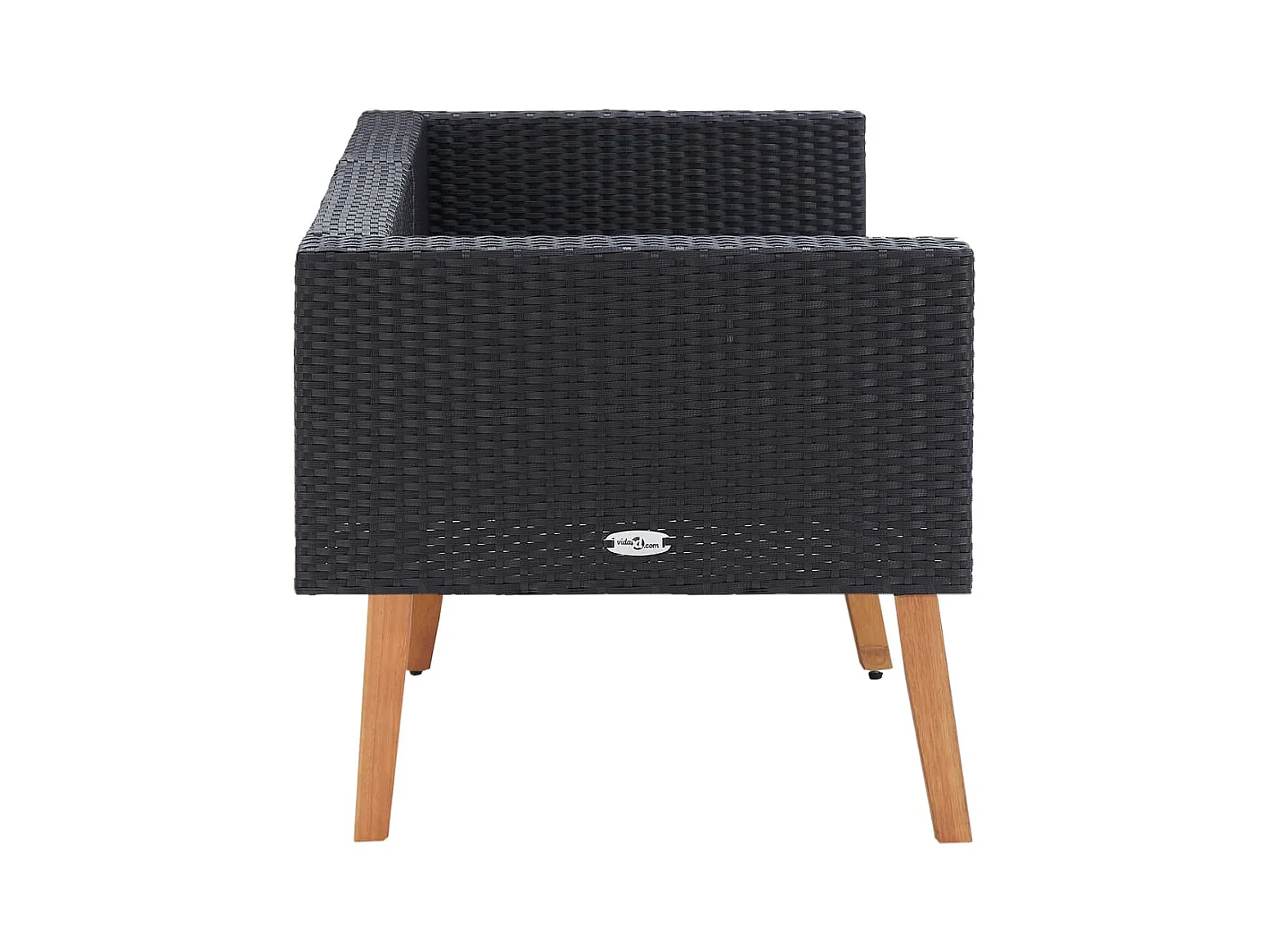 Sofá de jardim de 2 lugares com almofadas Resina vime Preto