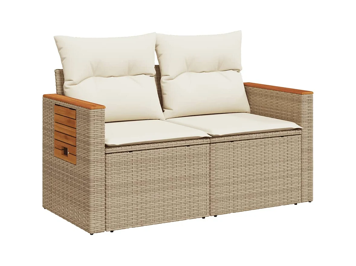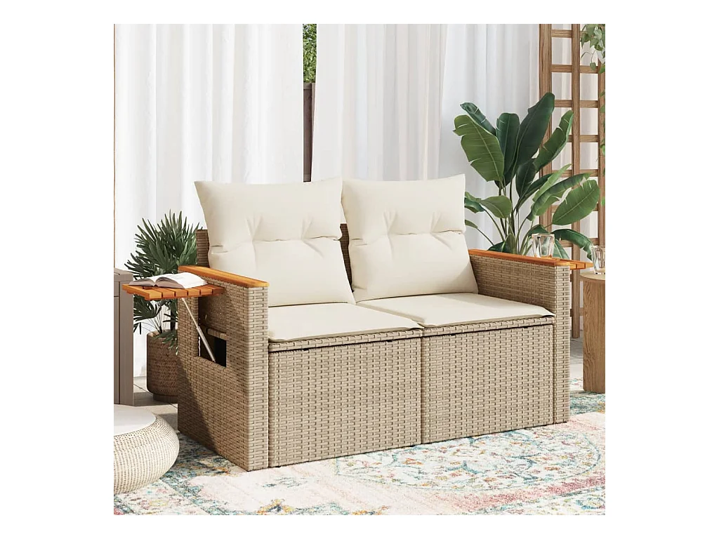 Sofá de jardim de 2 lugares com almofadões vime PE bege PT311167