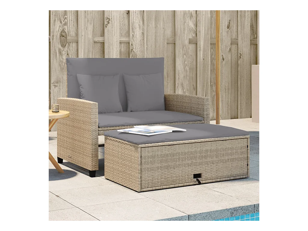 Sofá de jardim reclinável 2 lugares com mesa vime PE bege PT268429