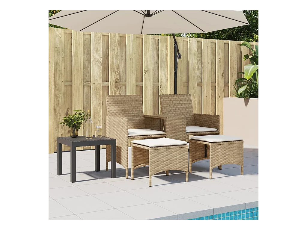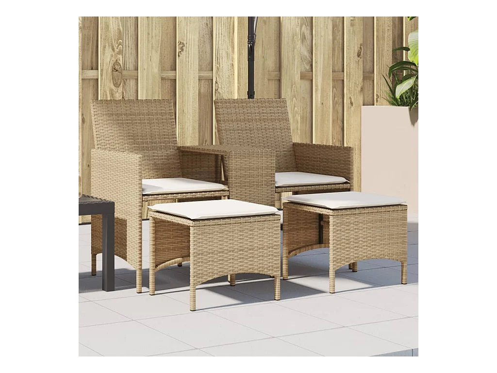 Sofá de jardim de 2 lugares com mesa e bancos vime PE bege PT926276