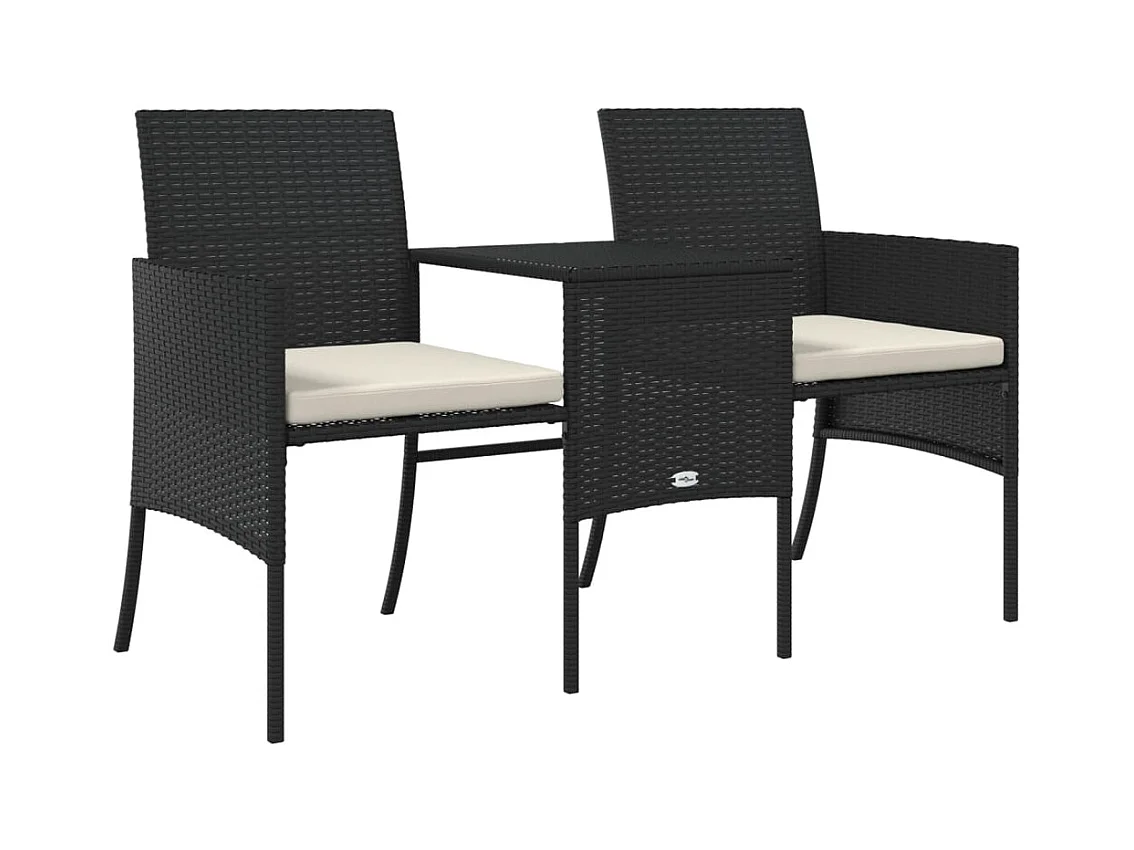 Sofá de jardim de 2 lugares com mesa e bancos vime PE preto PT336716