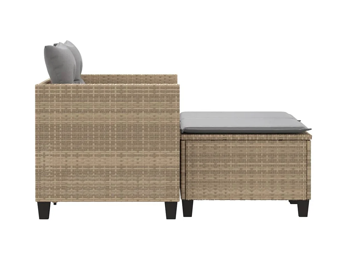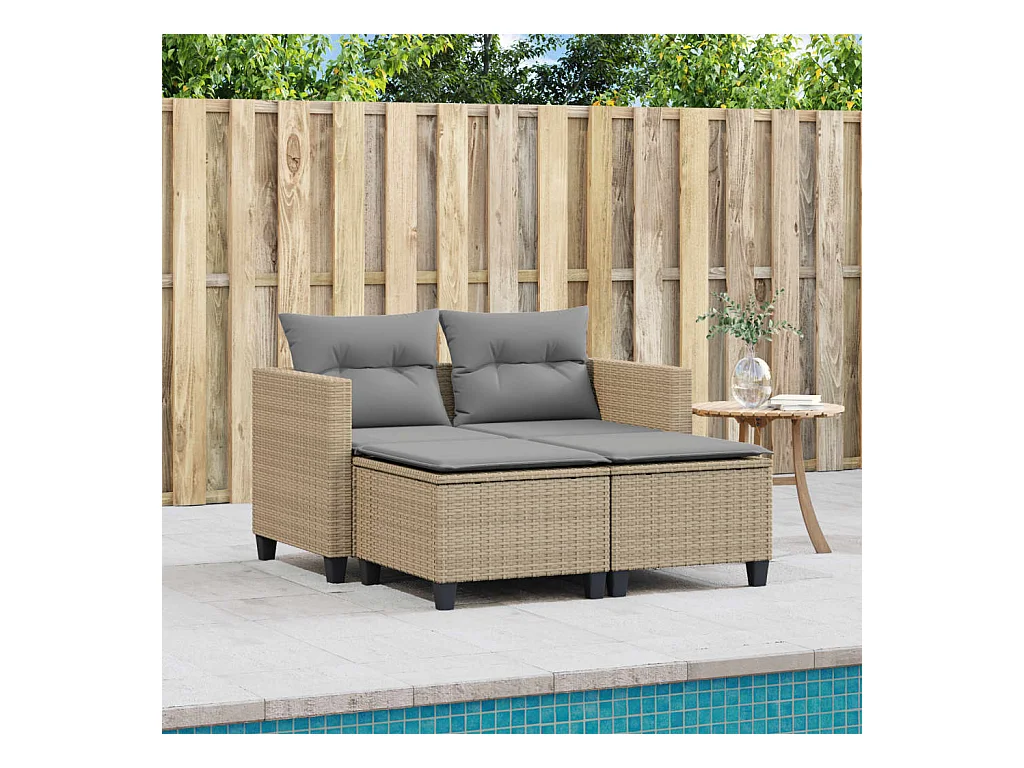 Sofá de jardim de 2 lugares com mesa e bancos vime PE bege