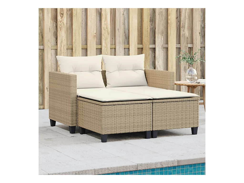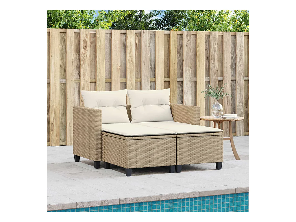 Sofá de jardim de 2 lugares com mesa e bancos vime PE bege PT926276