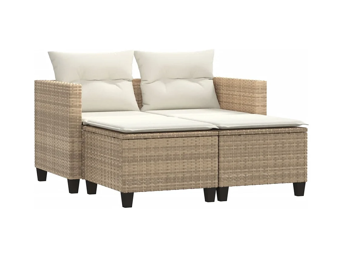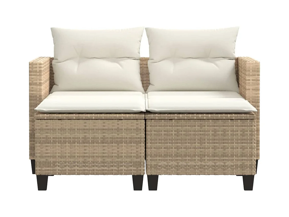 Sofá de jardim c/ mesa e almofadões 2 lugares vime PE bege PT143982