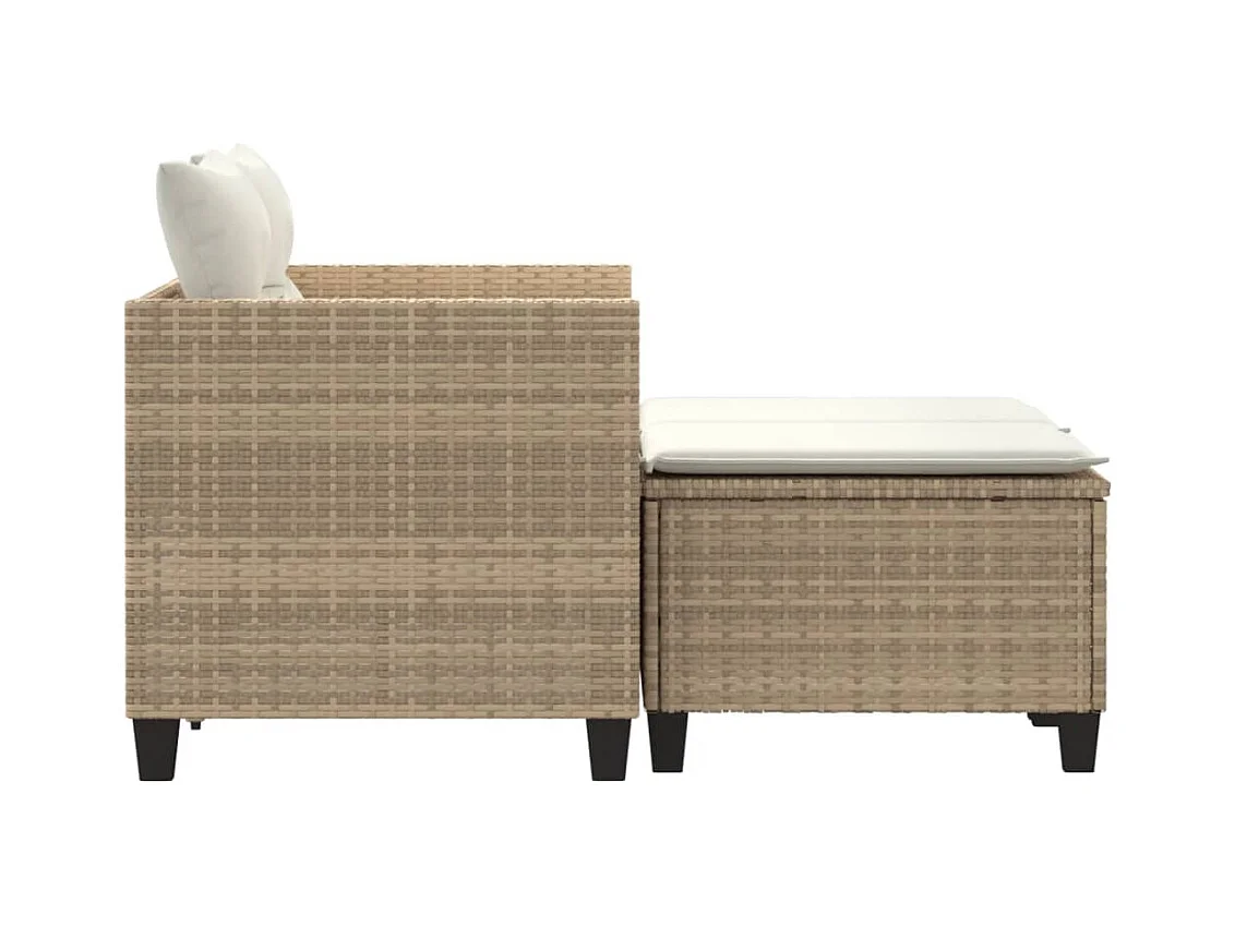 Sofá de jardim de 2 lugares com mesa e bancos vime PE bege