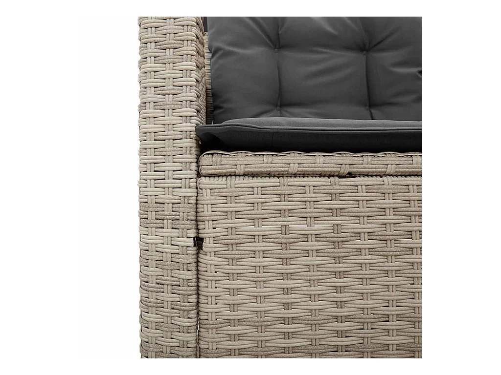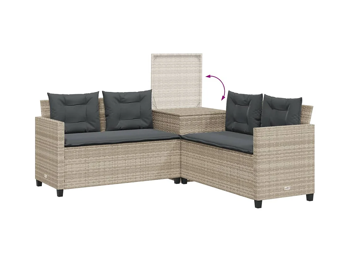 Sofá de jardim em L c/ mesa e almofadões vime PE cinzento-claro