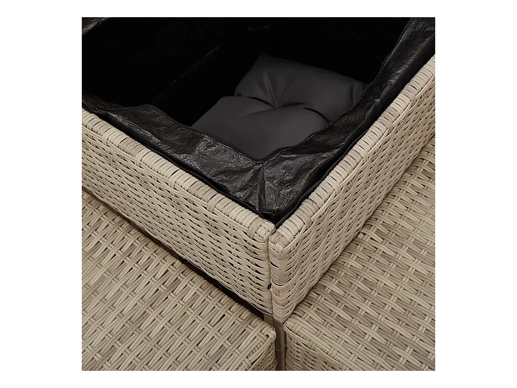 4 pcs conj. sofás jardim c/ almofadões vime PE cinzento-claro