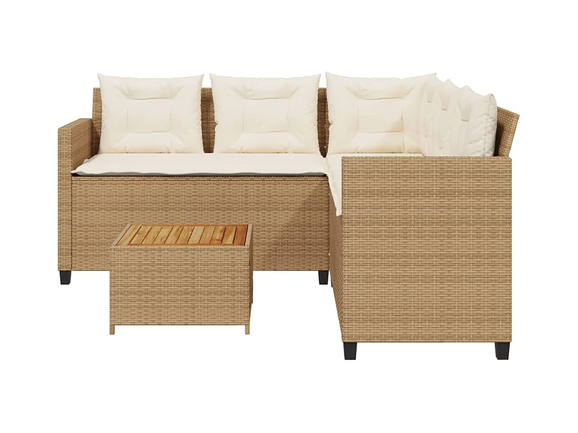 Sofá de jardim forma de L c/ mesa e almofadões vime PE bege