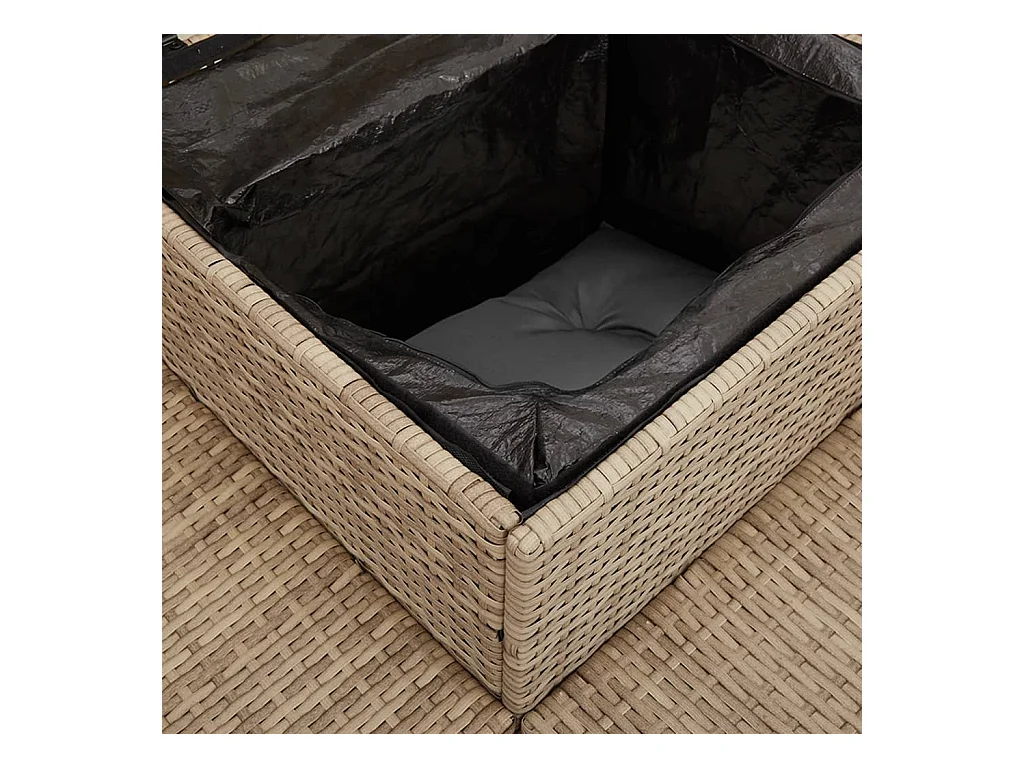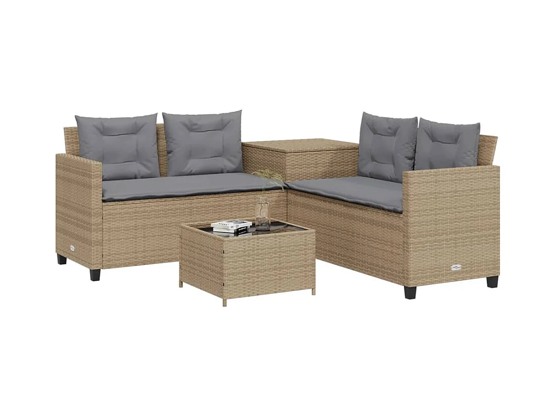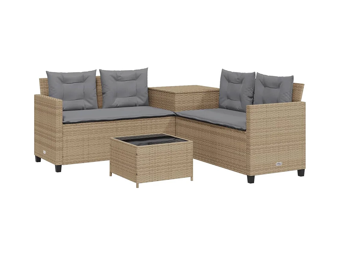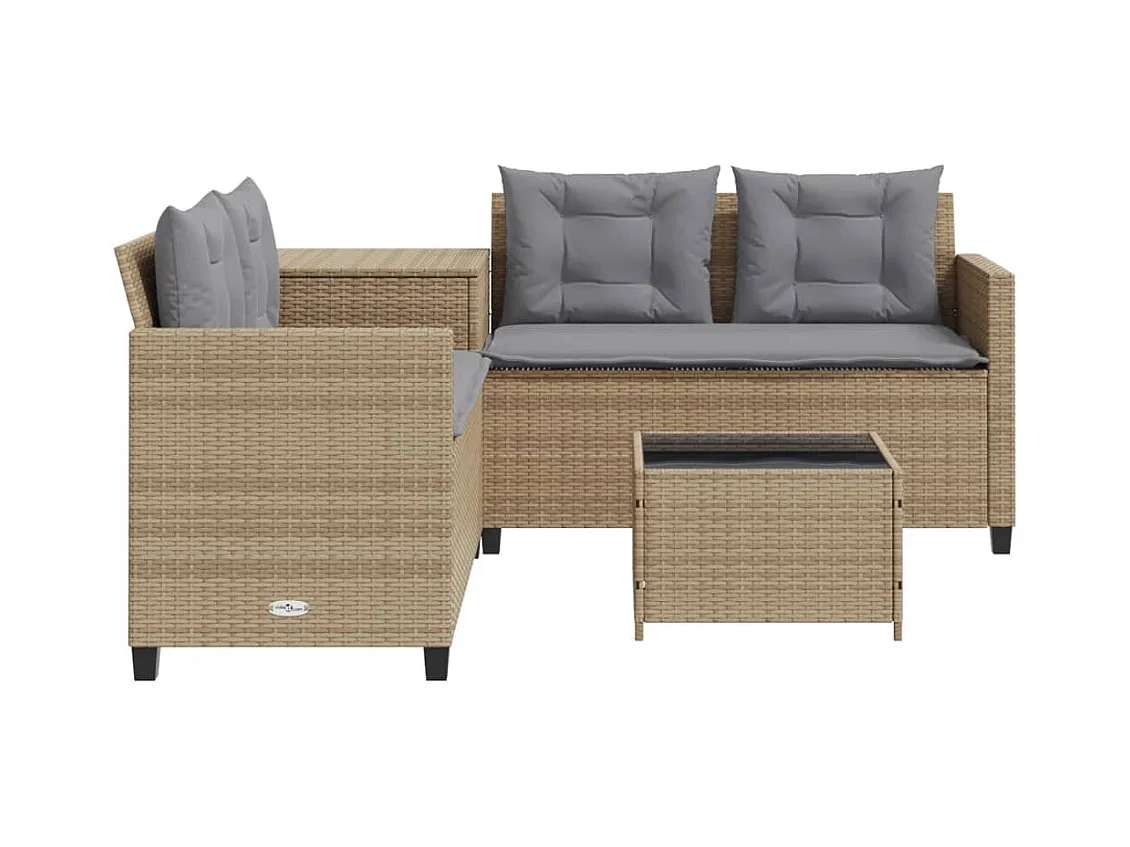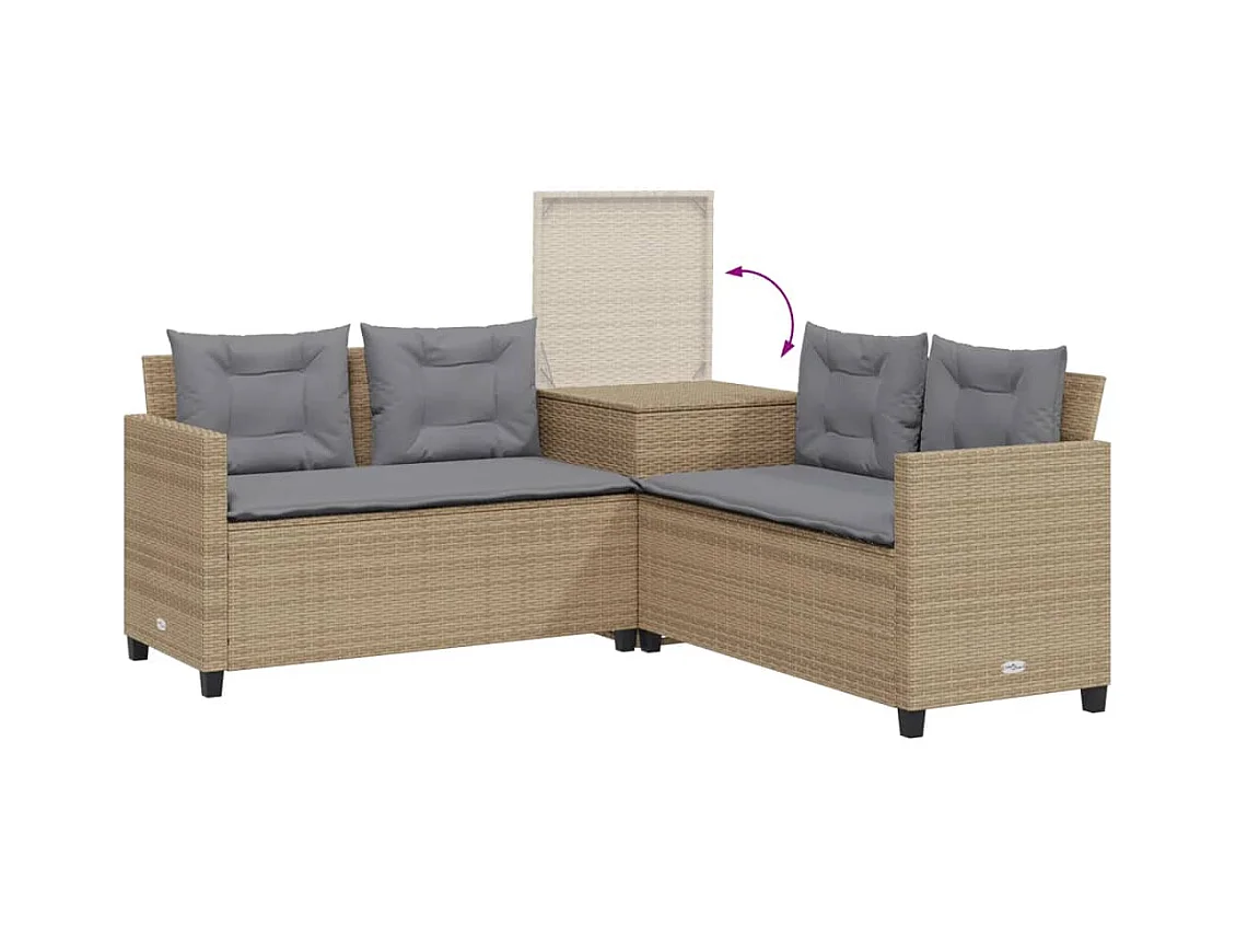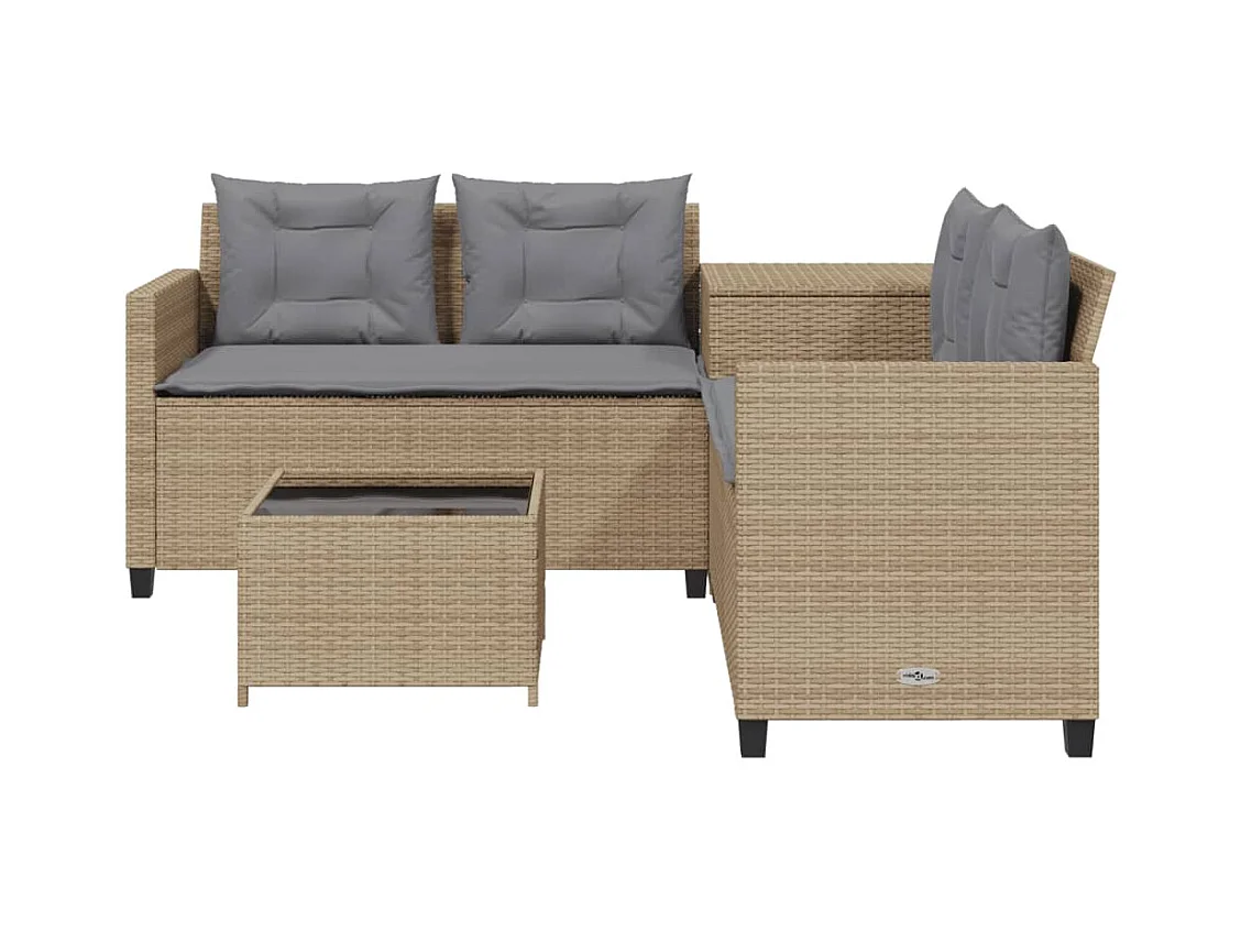 Sofá de jardim forma de L c/ mesa e almofadões vime PE bege