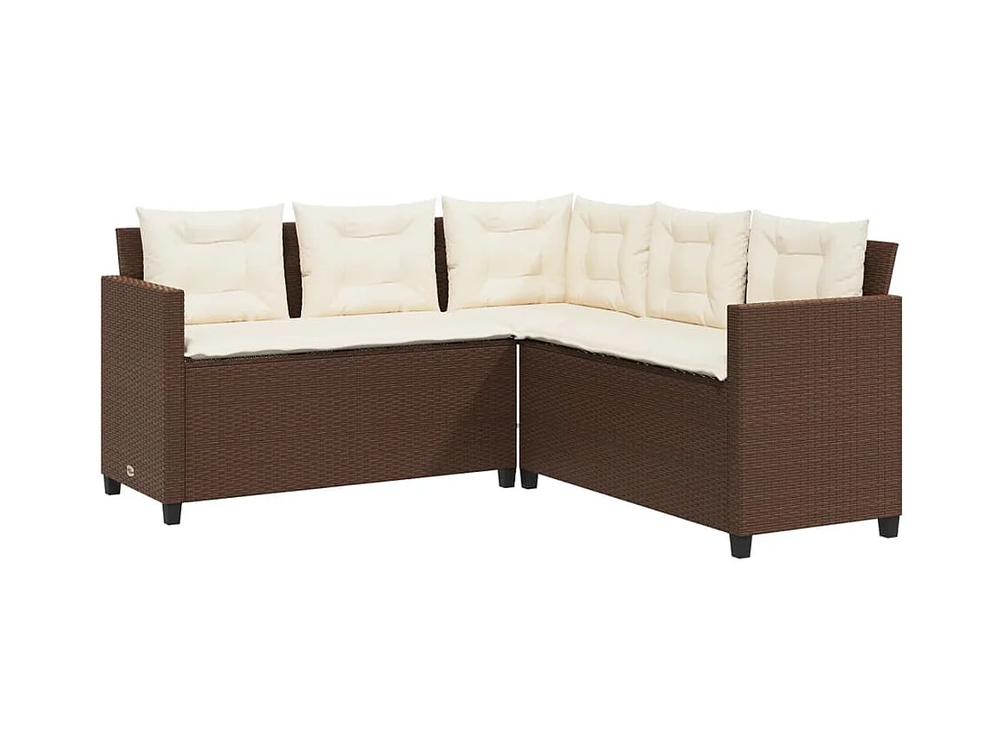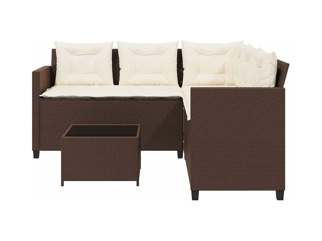 Sofá de jardim forma de L c/ mesa e almofadões vime PE castanho PT237799