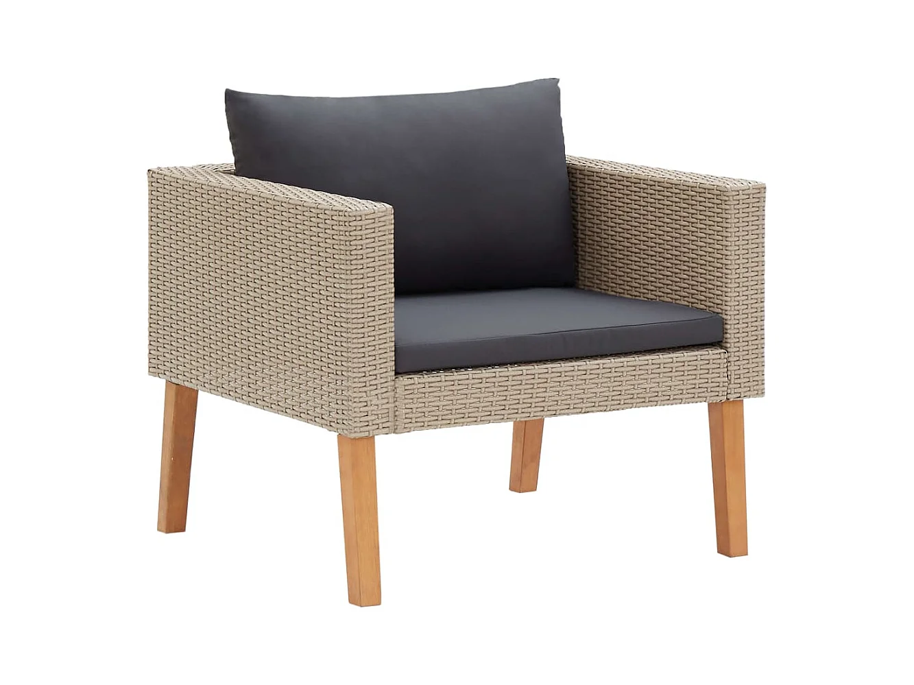 Sofá de jardim individual com almofadões vime PE bege PT293413