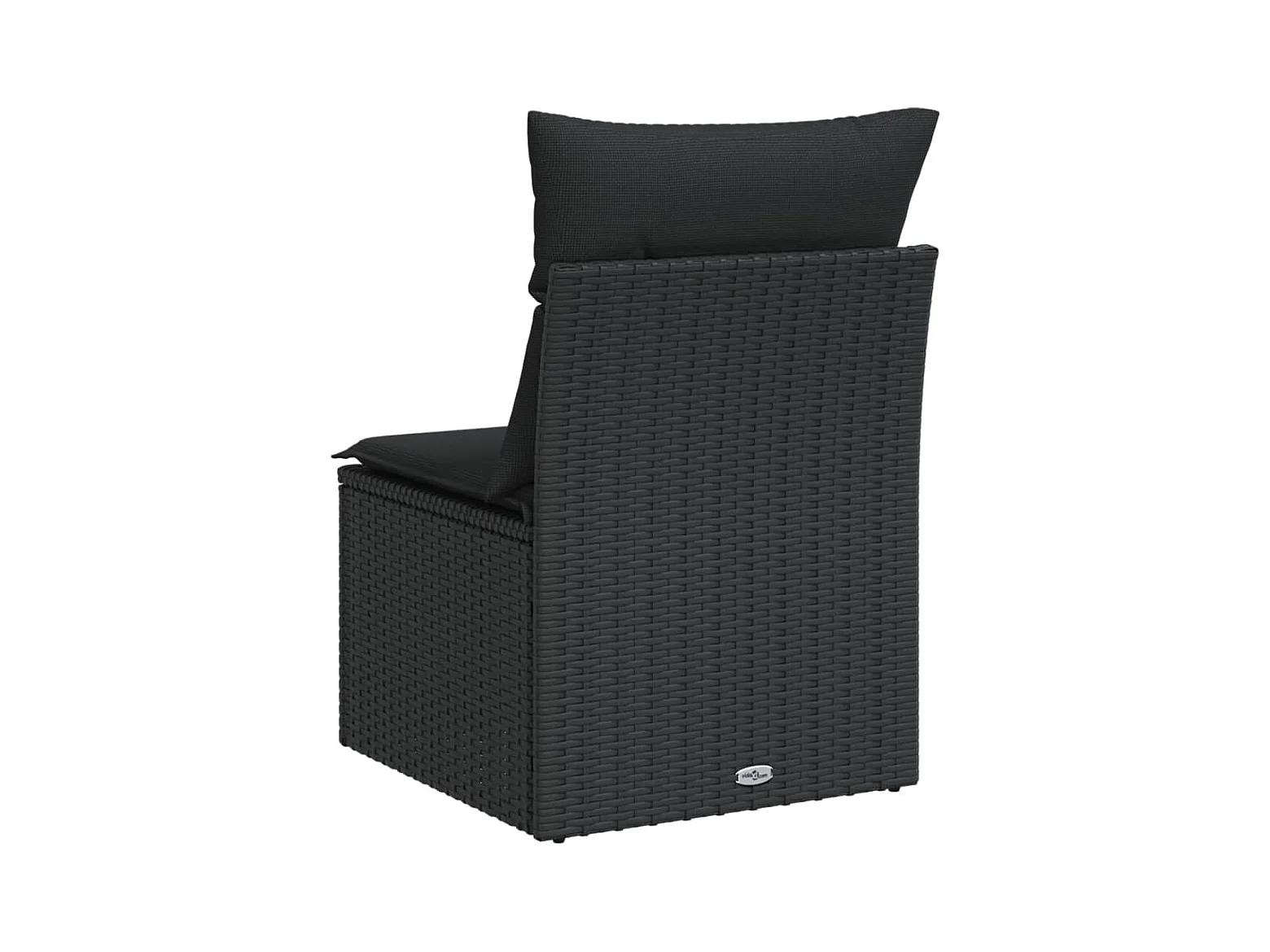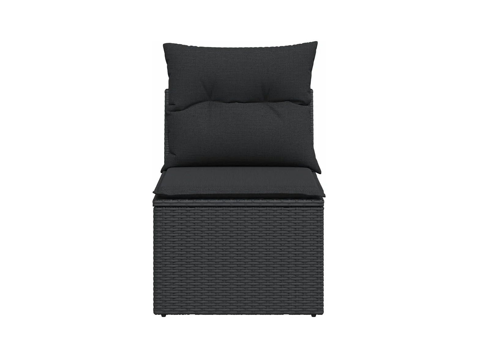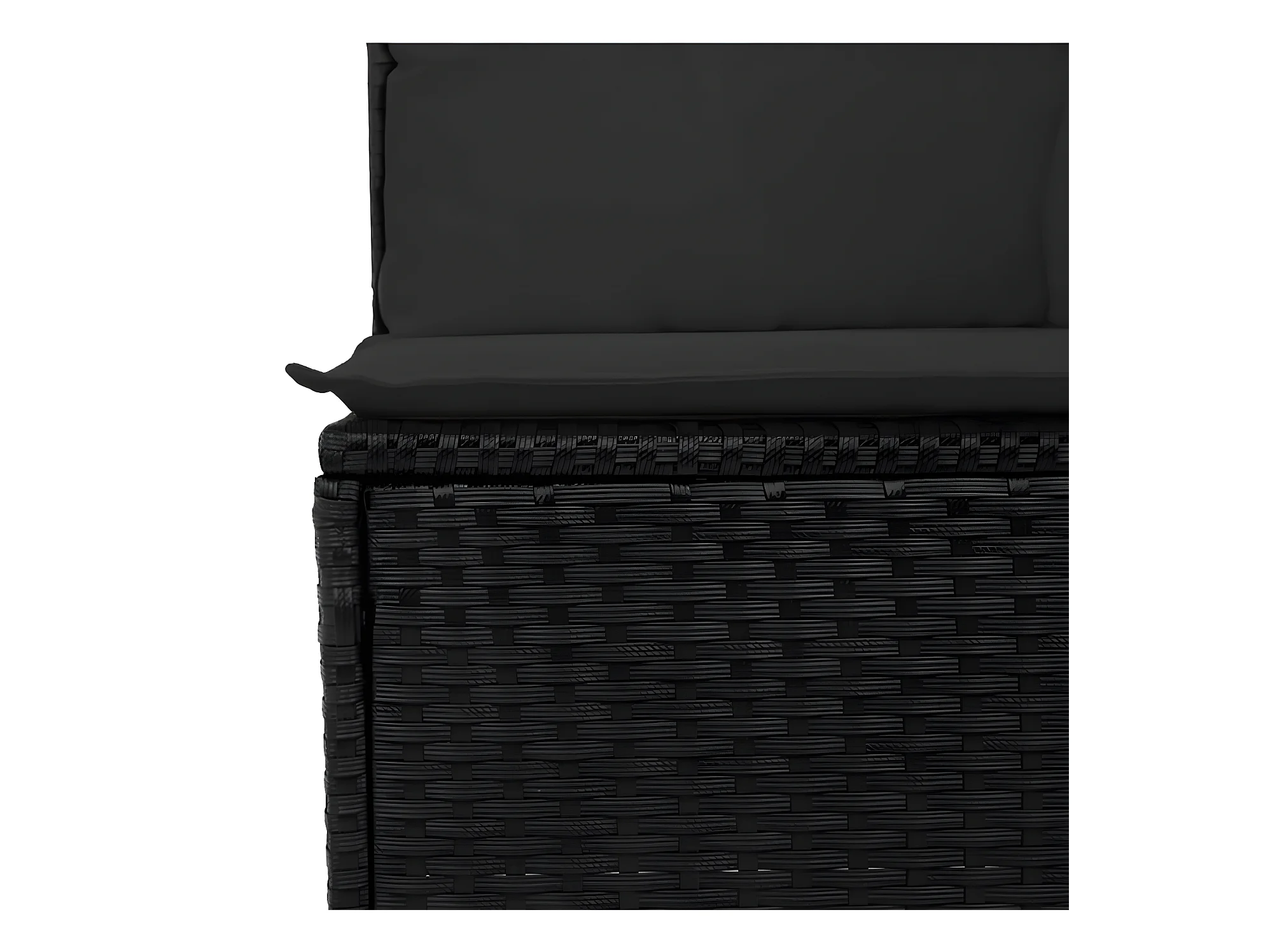 Sofá de jardim sem braços, almofadas pretas, tecido de resina