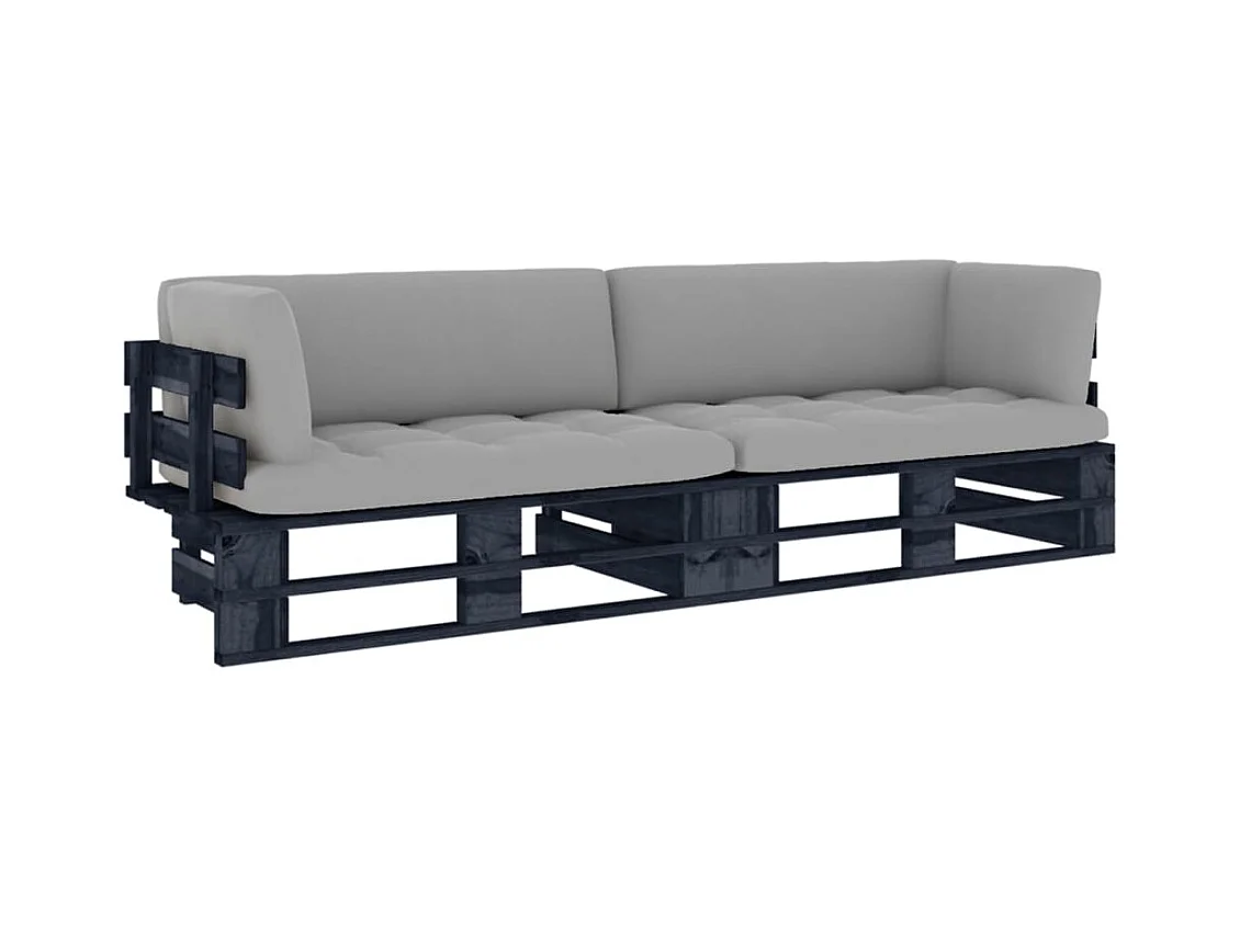 Sofá de paletes 2 lugares com almofadões pinho impregnado preto