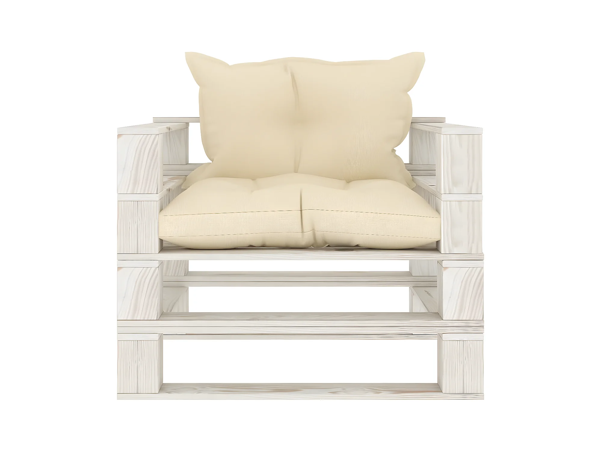 Sofá médio de paletes para jardim com almofadas creme Madeira