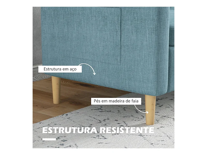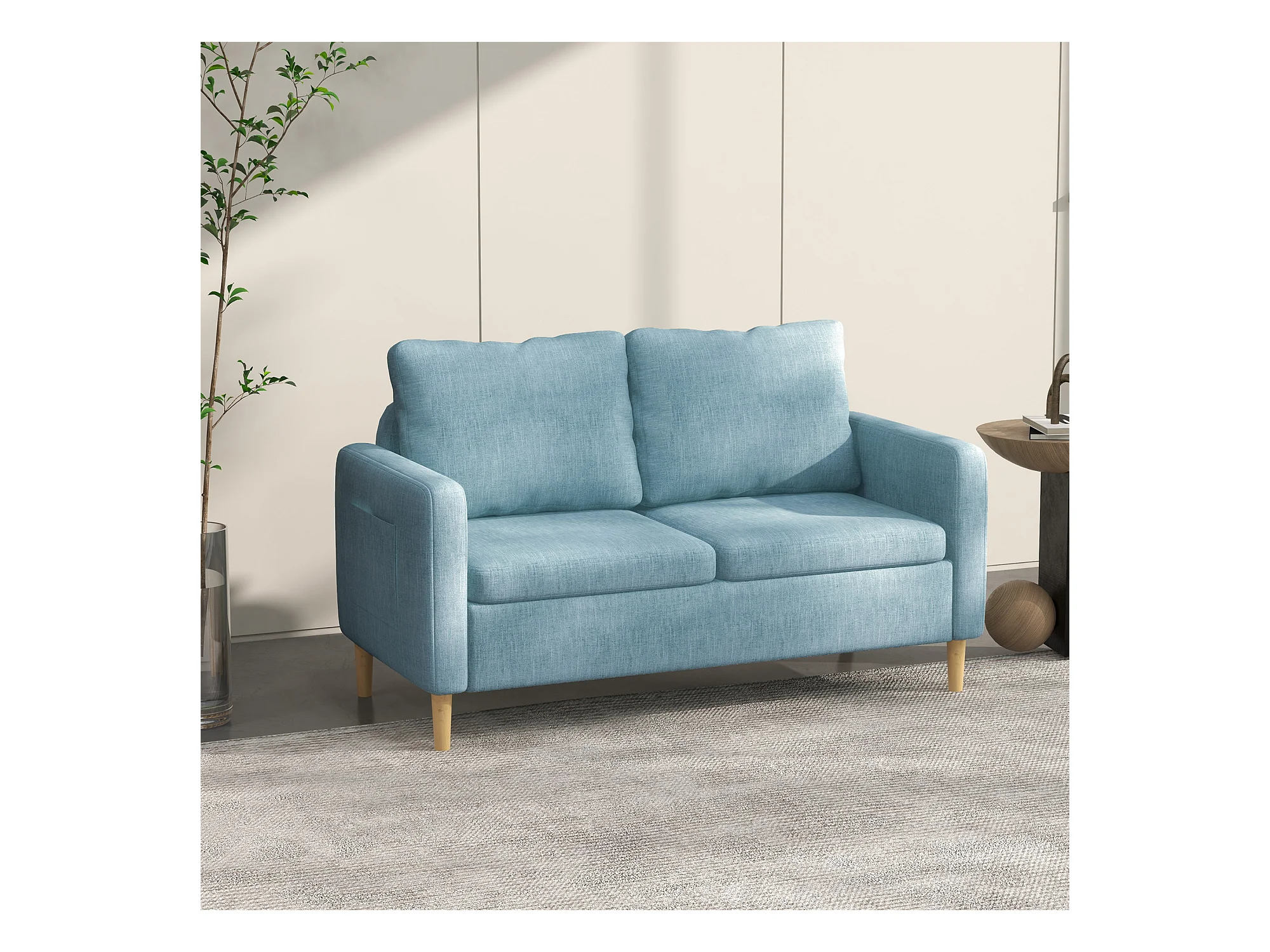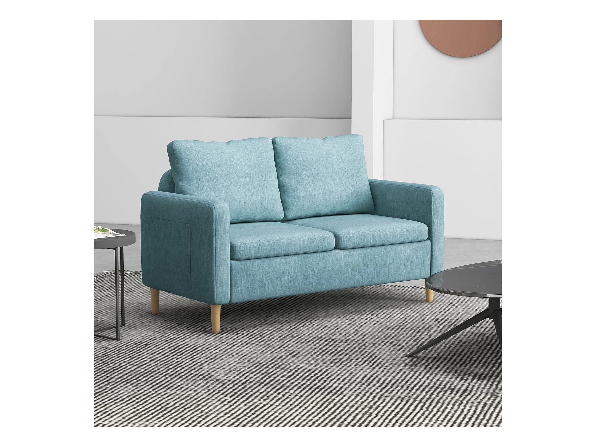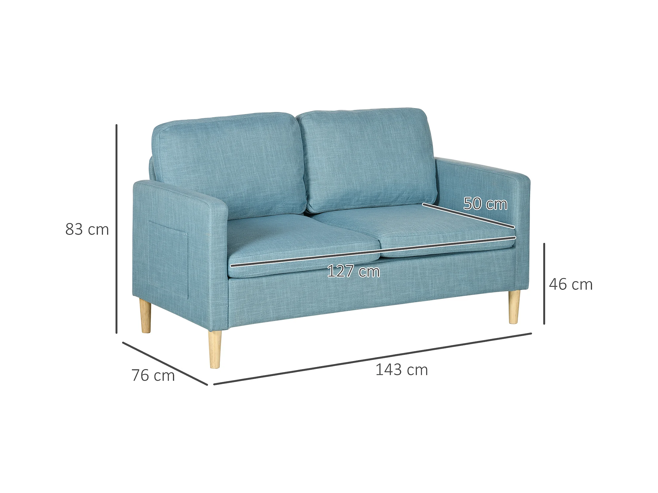 Sofá Dool Nórdico de 2 Lugares em Tecido Premium Azul com Bolsos Laterais - 143x76x83 cm