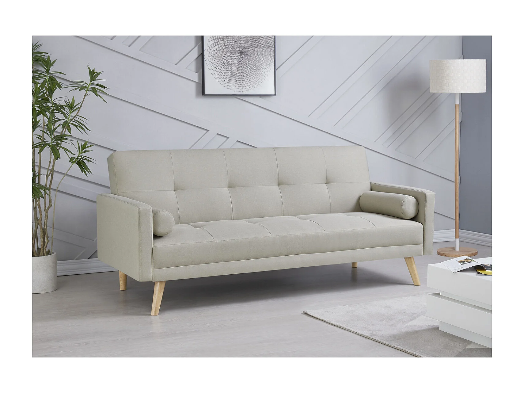 Sofá escandinavo conversível de 3 lugares em tecido bege BERLIM