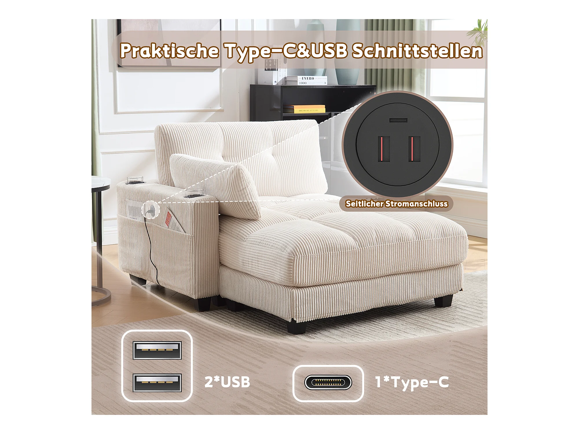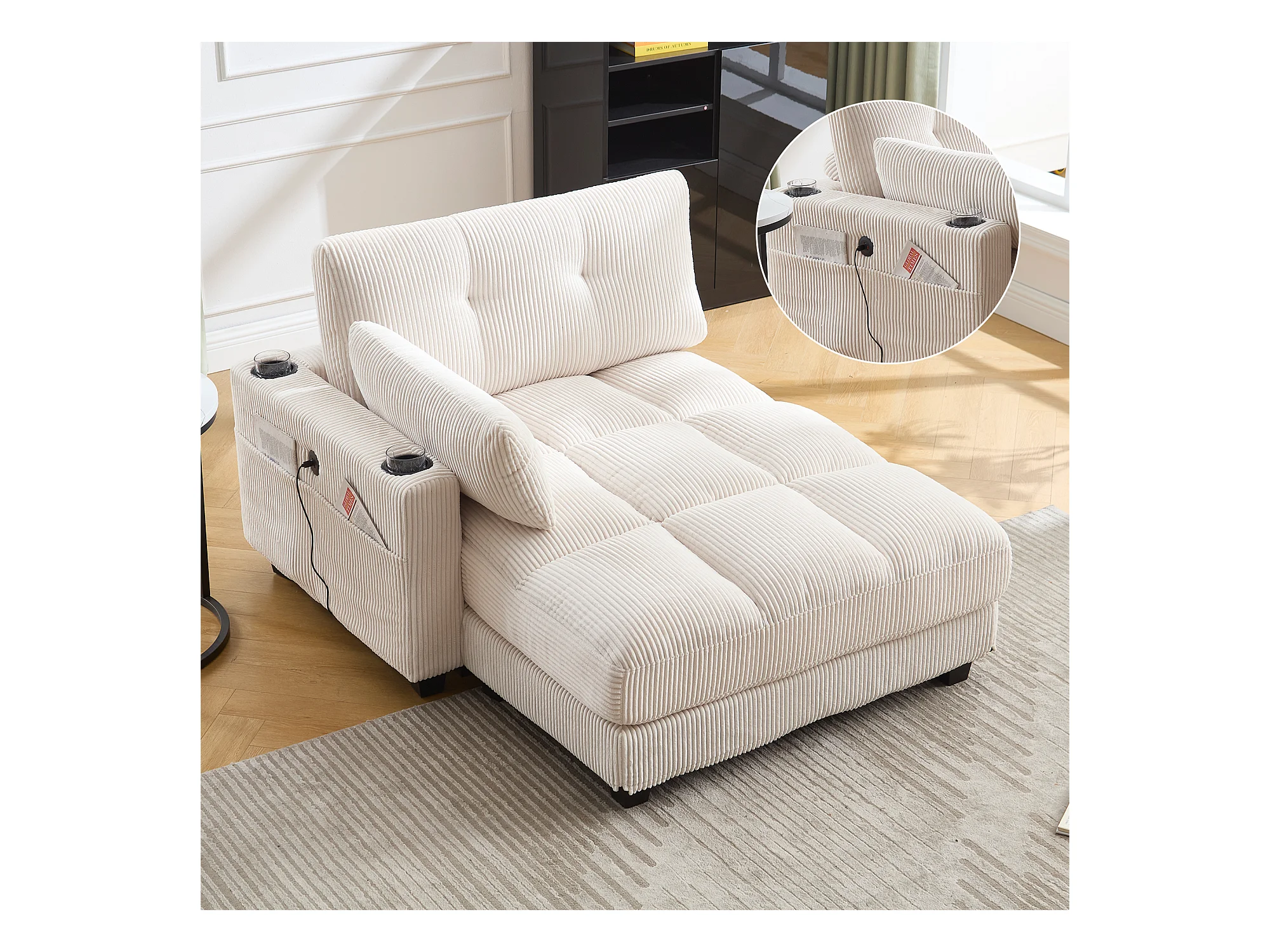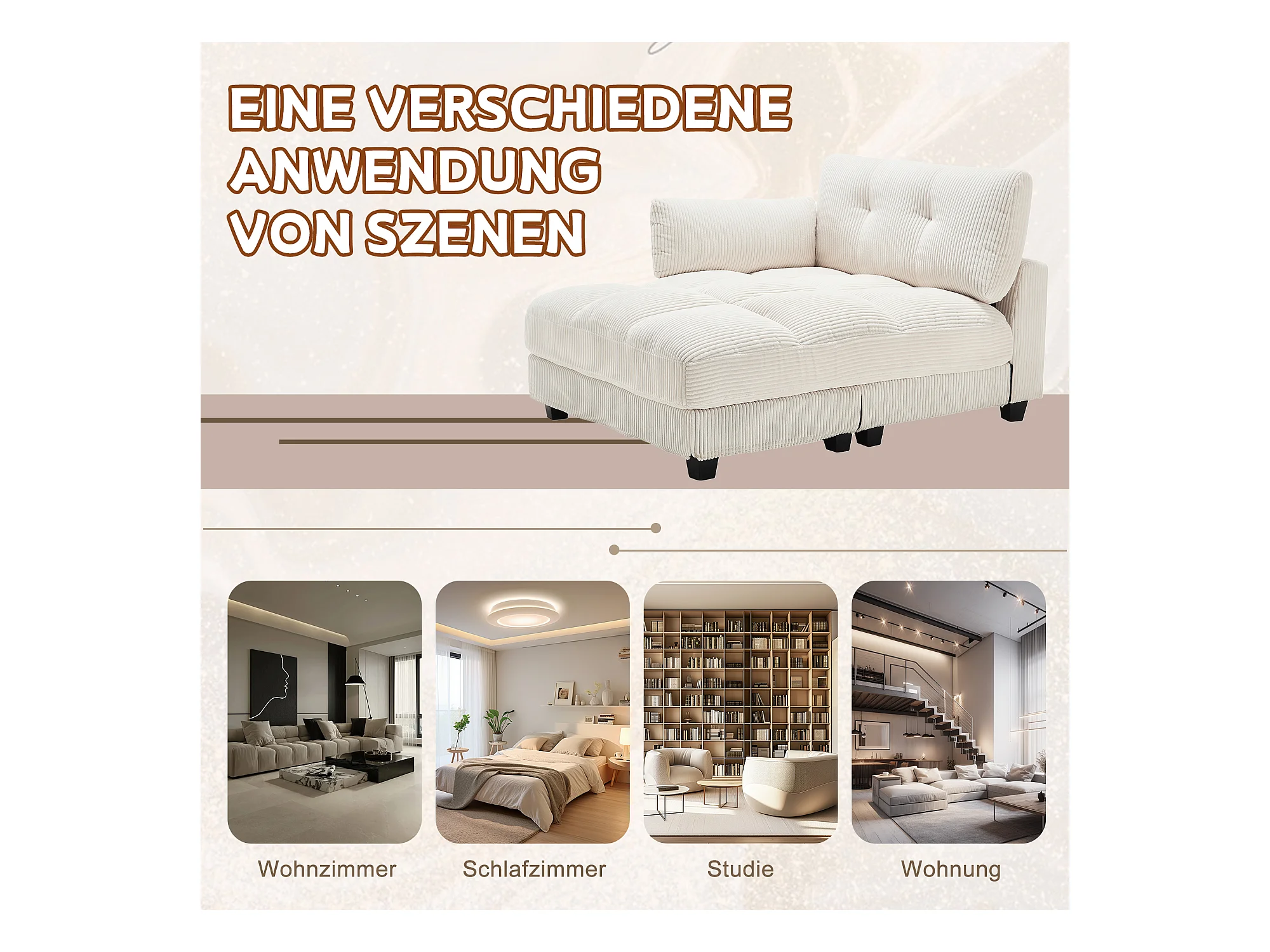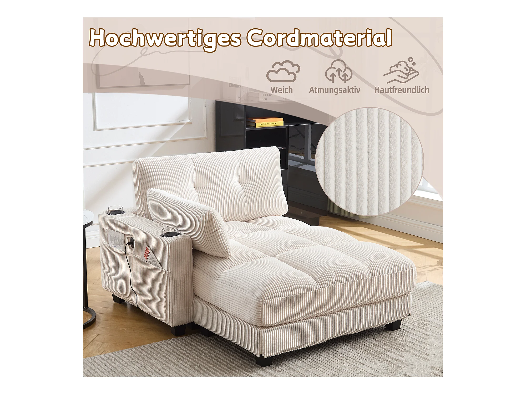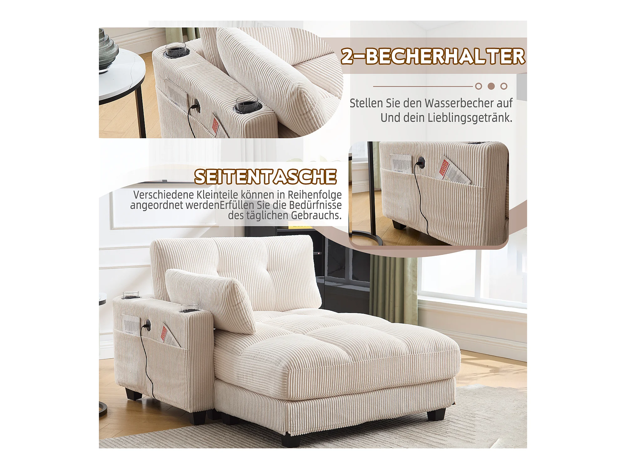 Sofá estofado - 140 x 112 x 81 cm - corrimãos com almofadas de enrolar - veludo - bege