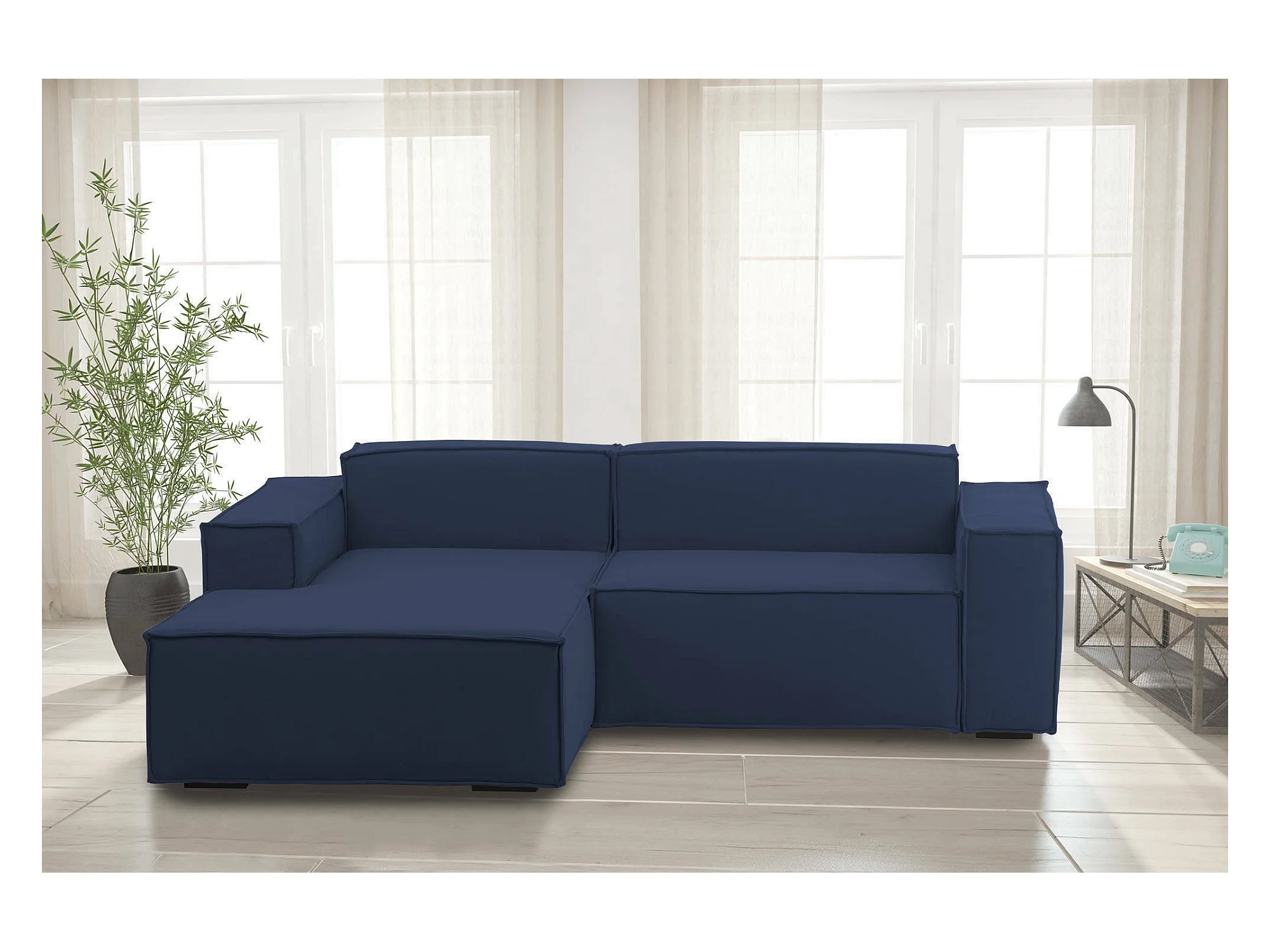 Sofá fixo Dkivil, sofá modular de 2 lugares com península esquerda, 100% Fabricado na Itália, Sofá de tecido moderno, 220x170h70 cm, Azul