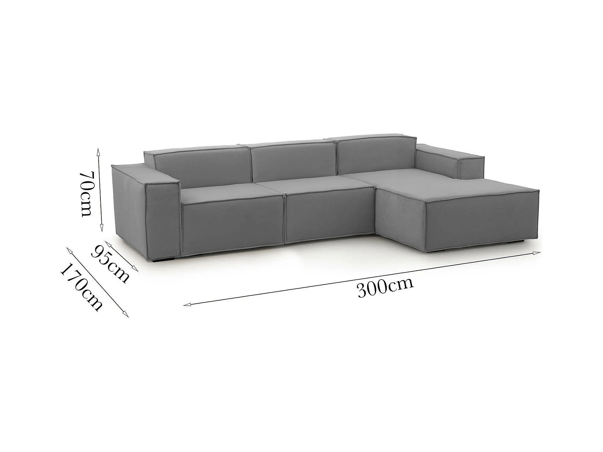 Sofá fixo Giovanna, sofá modular de 3 lugares com península direita, 100% Made in Italy, Sofá de tecido moderno, 300x170h70 cm, Cinza