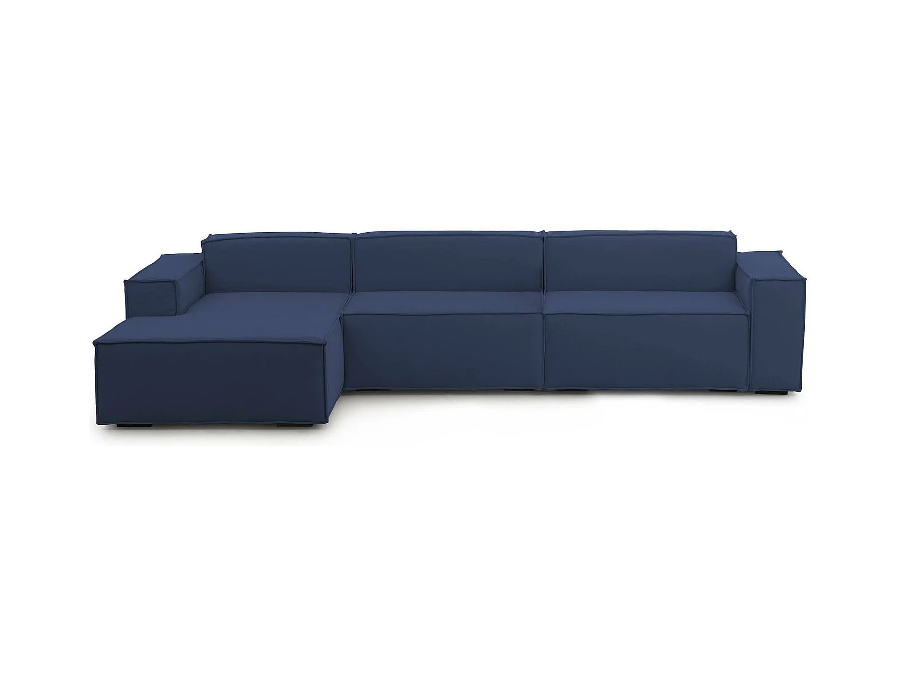 Sofá fixo Licia, sofá modular de 4 lugares com península esquerda, 100% Fabricado na Itália, Sofá de tecido moderno, 340x170h70 cm, Azul