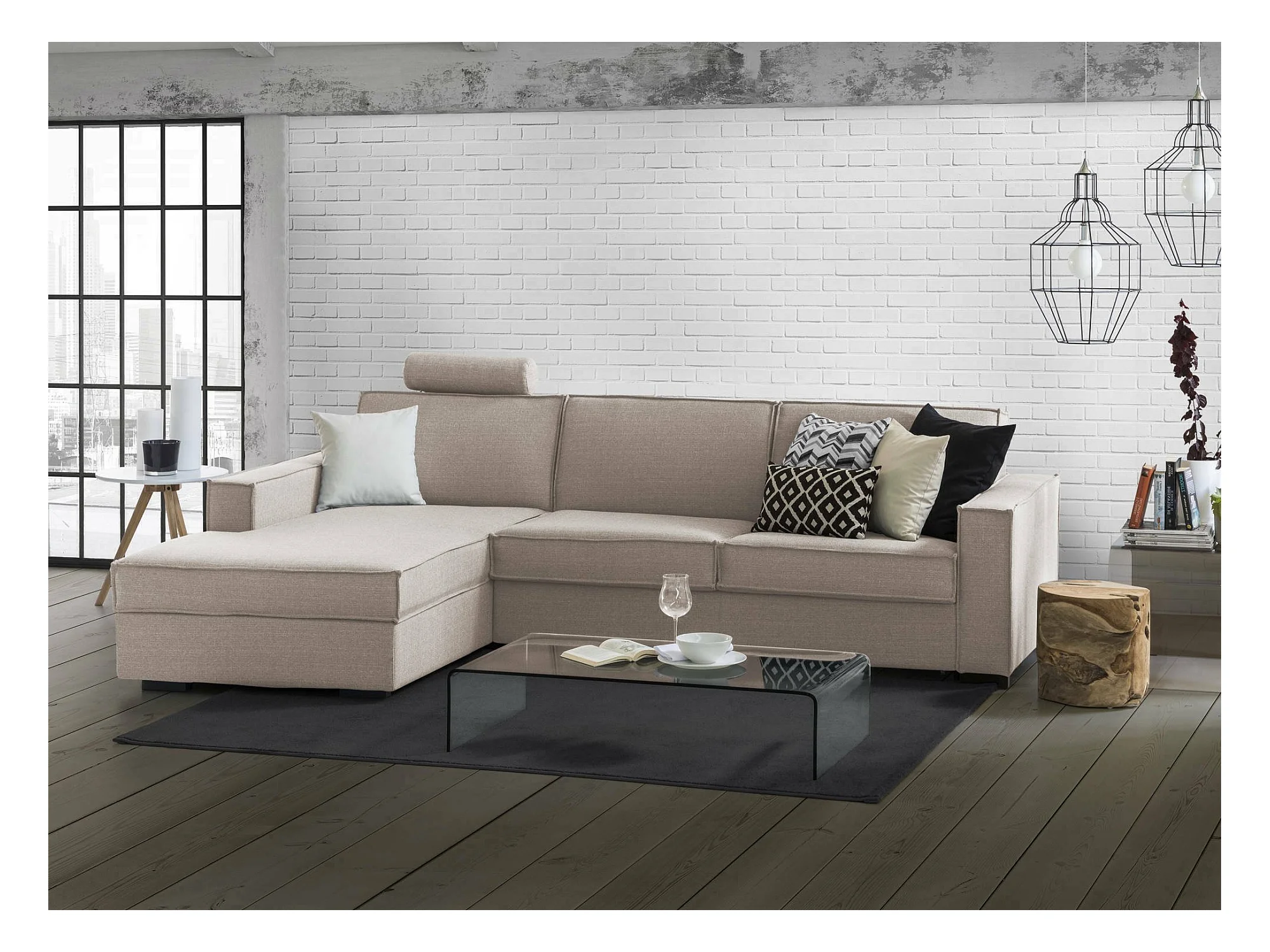 Sofá fixo Perla, Sofá de canto, 100% Fabricado na Itália, Sofá da sala com, Península contêiner esquerda, com braços finos, Cm 260x95h90, Taupe