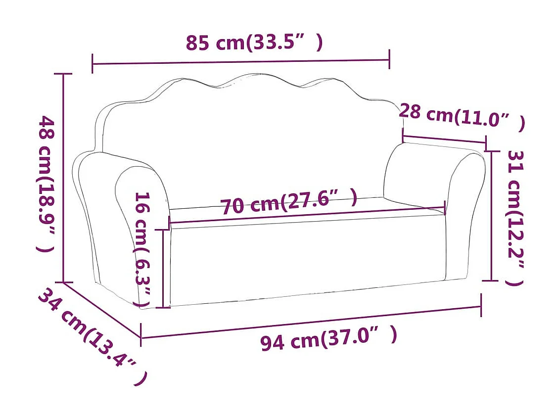 Sofá infantil 2 lugares cinza claro pelúcia macia