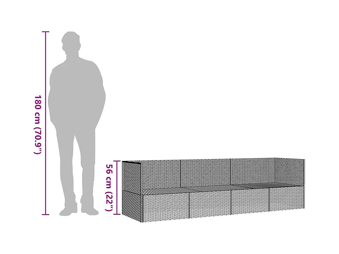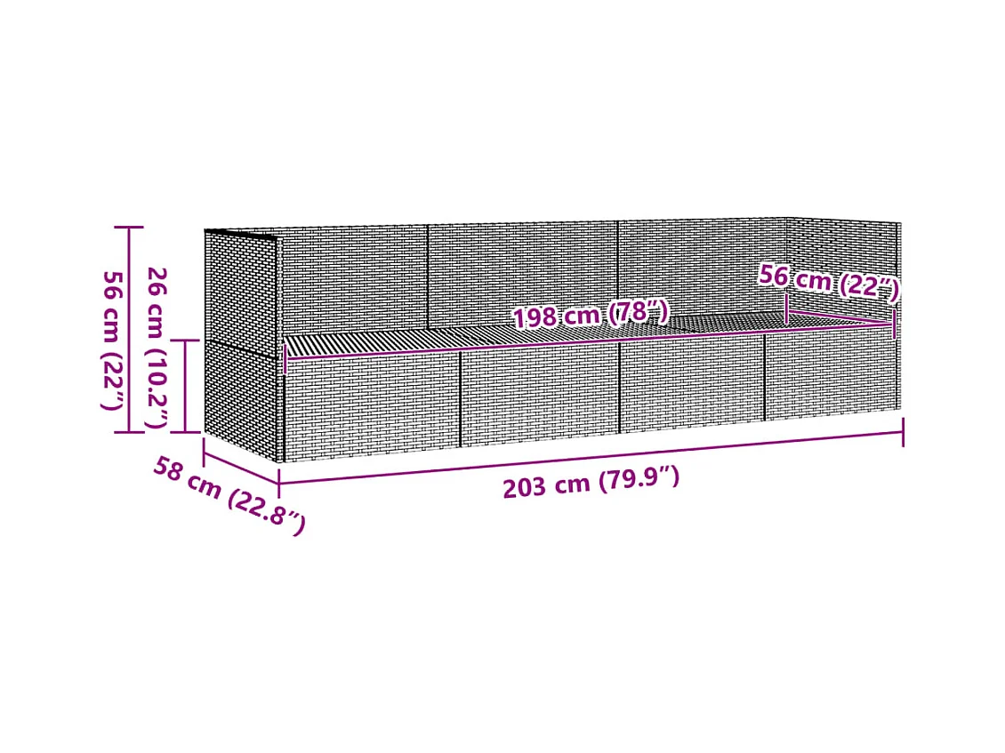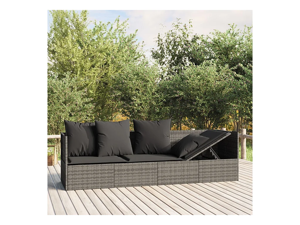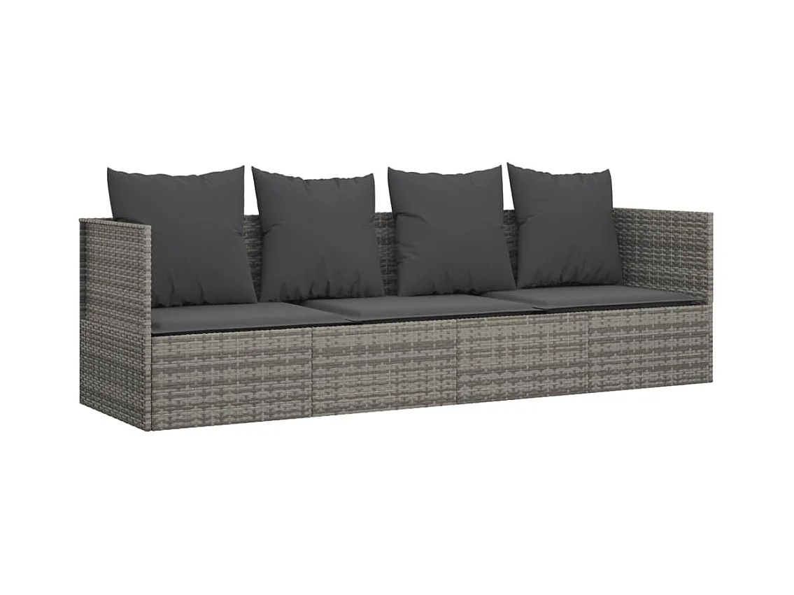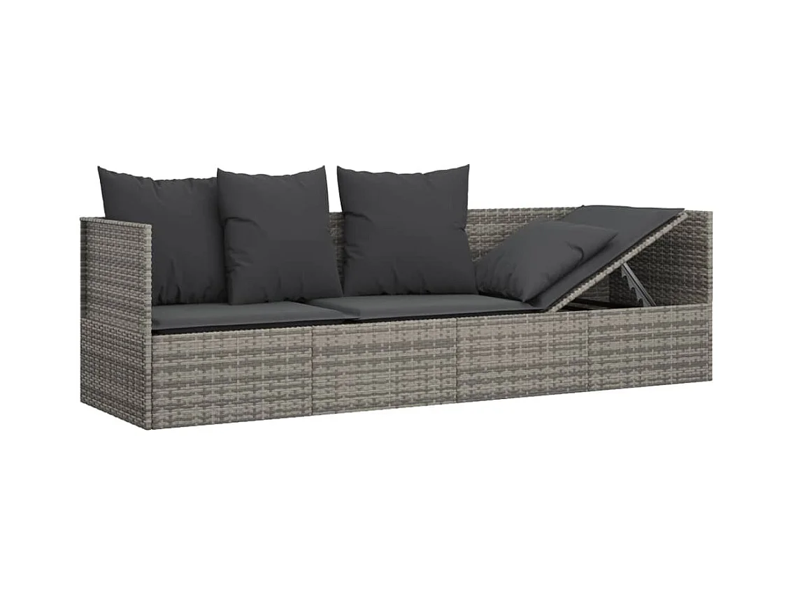 Sofá lounge de exterior c/ almofadões vime PE cinzento