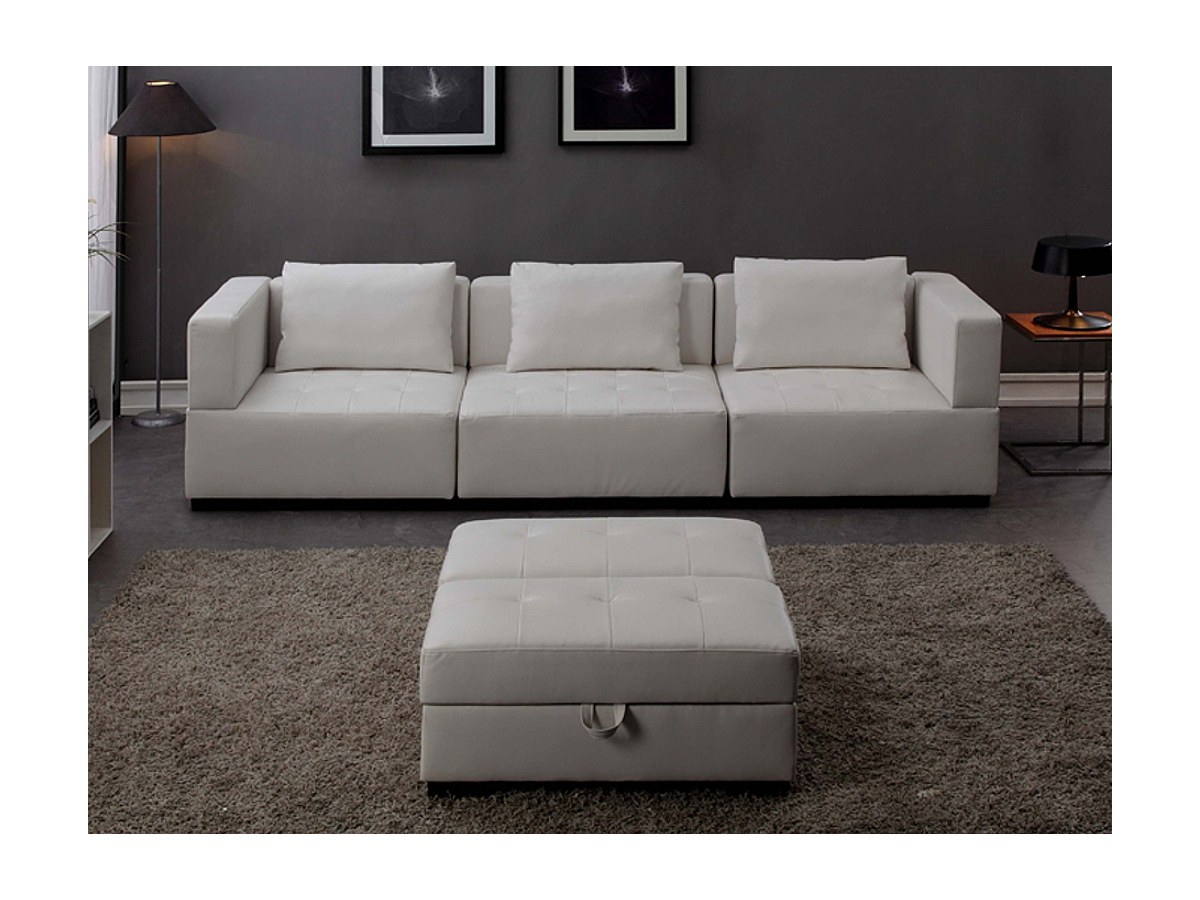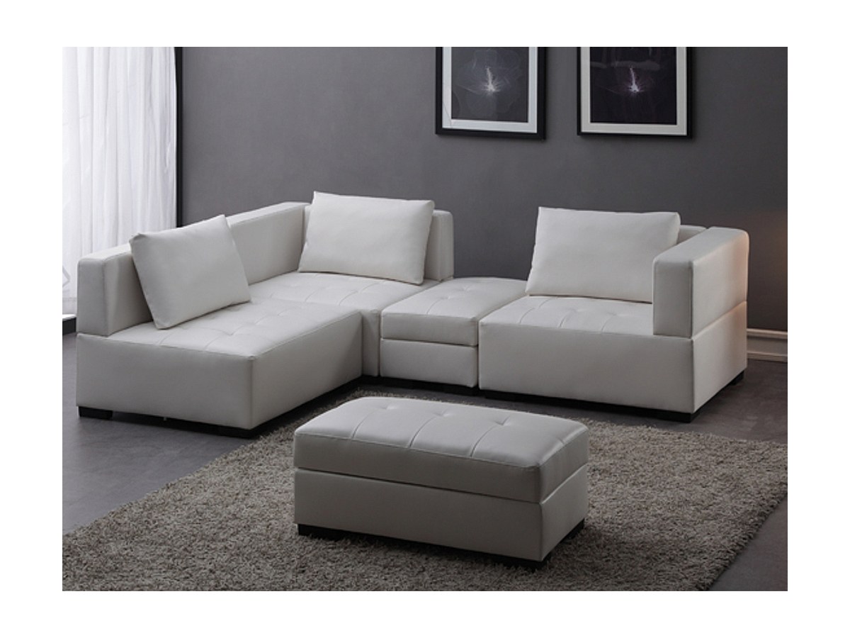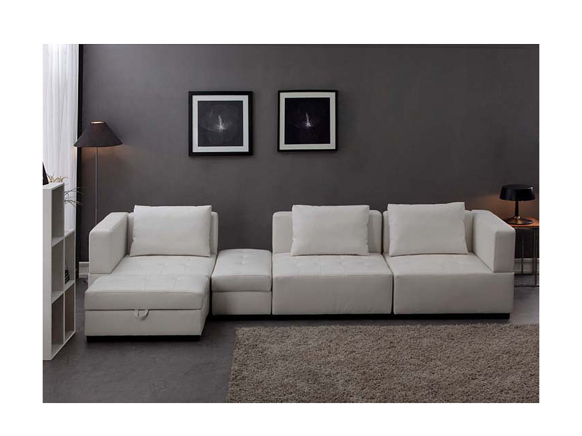 Sofá modular 5 a 6 lugares em pele sintética Branco - COLIN