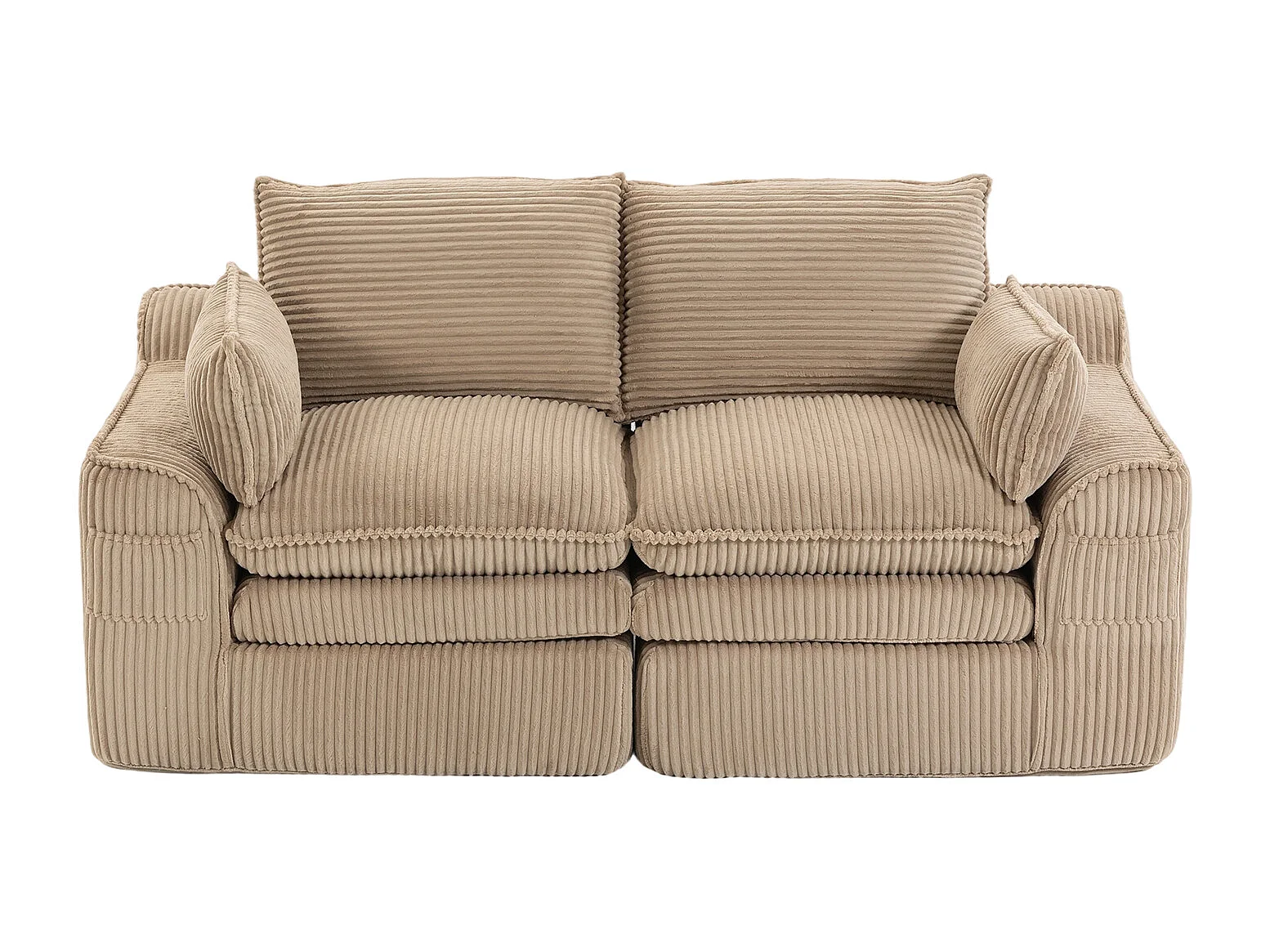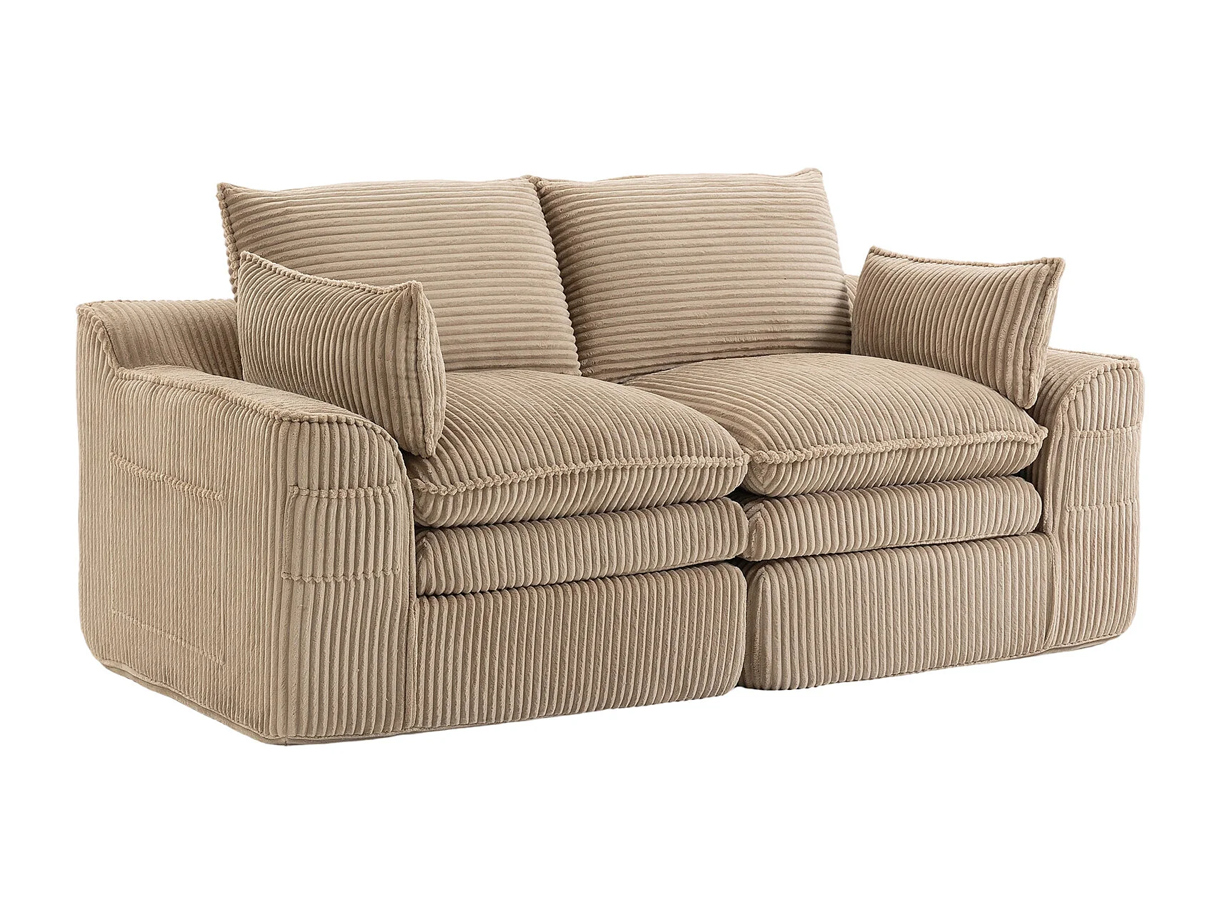 Sofá modular de 2 lugares em veludo cotelê - 191 x 94 x 85 cm - com 1 pufe + almofadas + 2 bolsos - cáqui