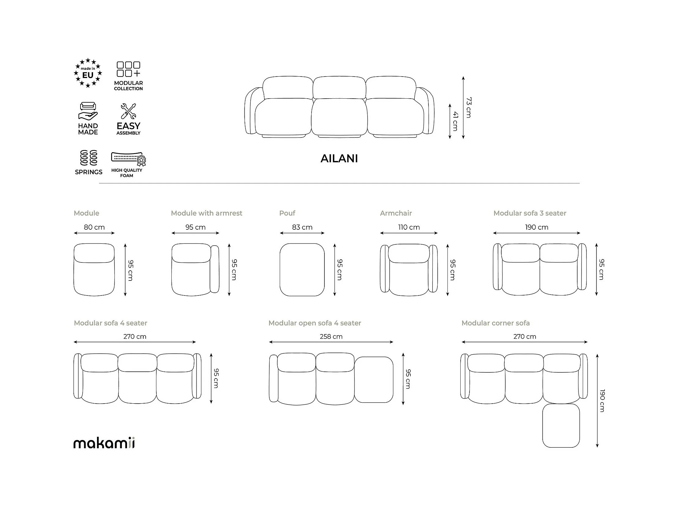 Sofá modular direito 3 lugares em tecido chenille jeans - AILANI