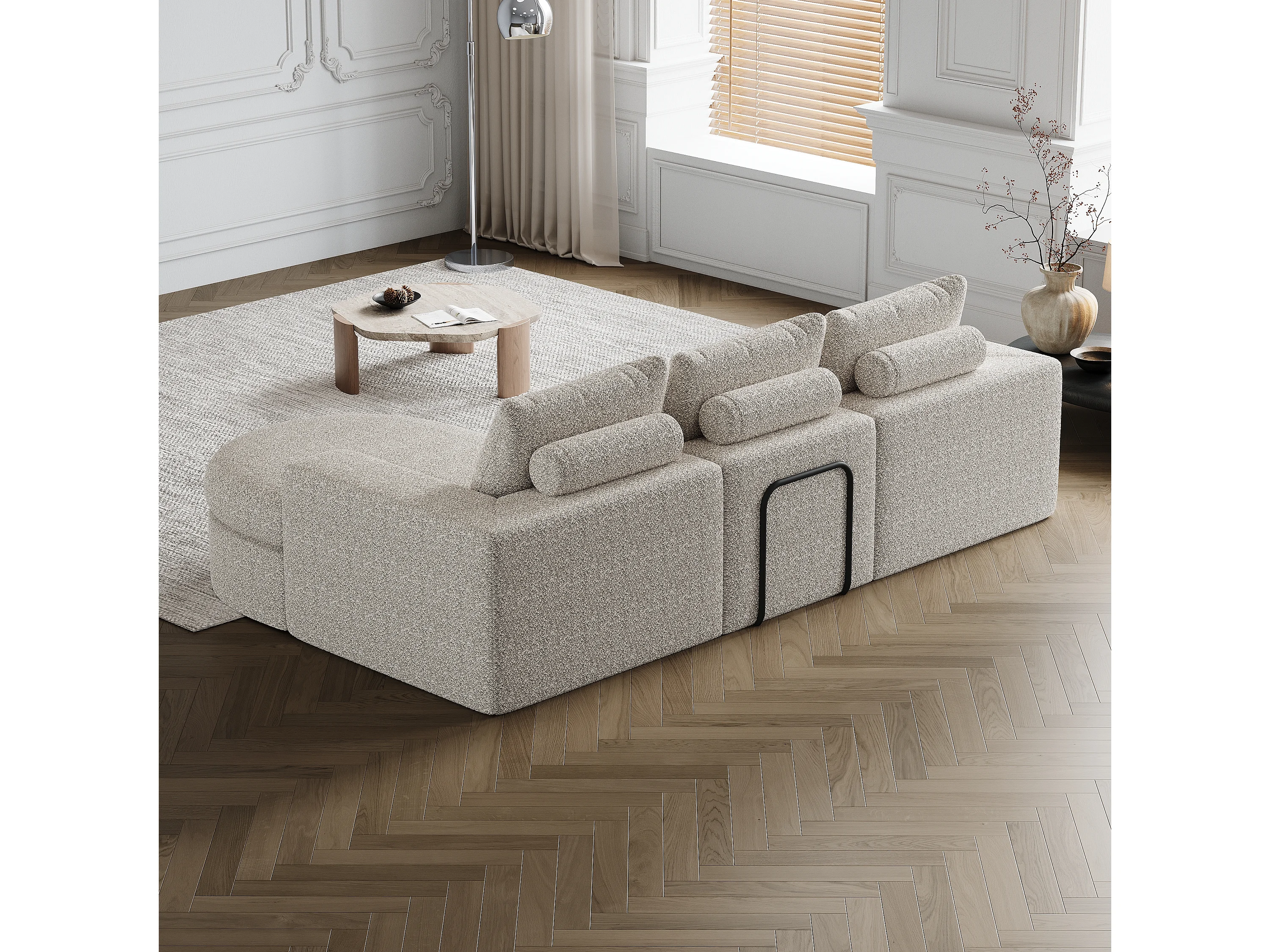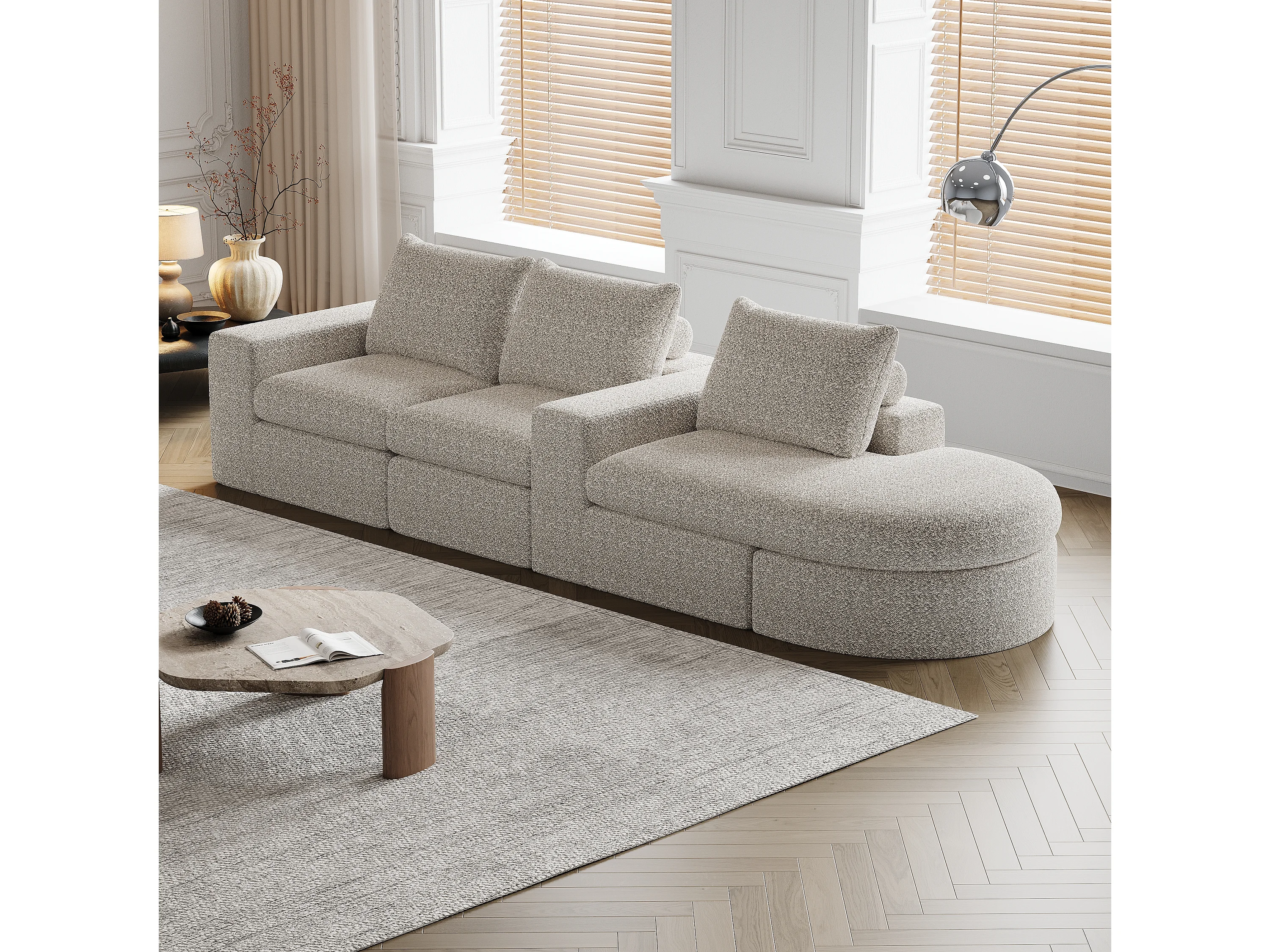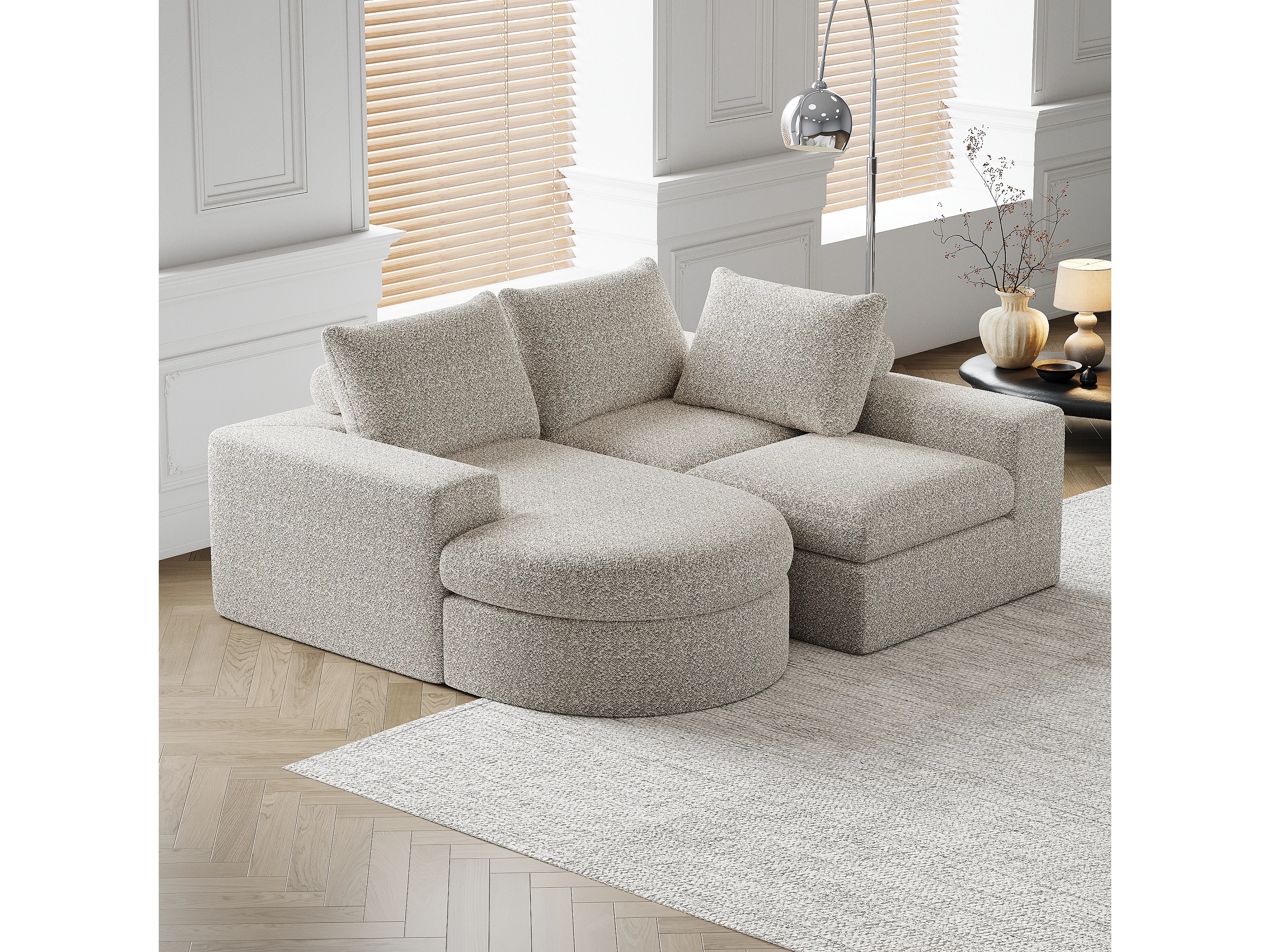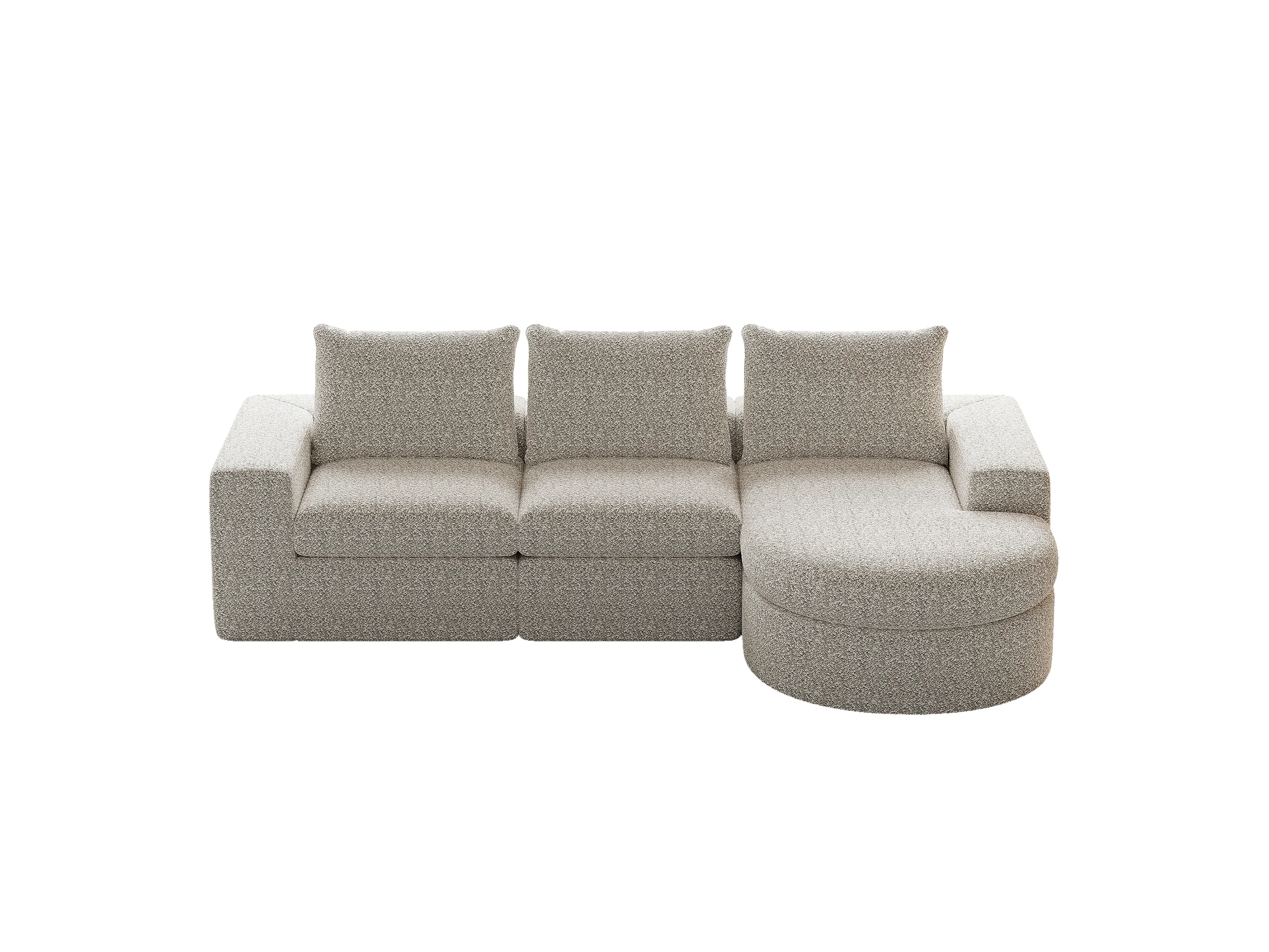 Sofá modular L de chenille com chaise longue de espuma sem montagem para sala de estar