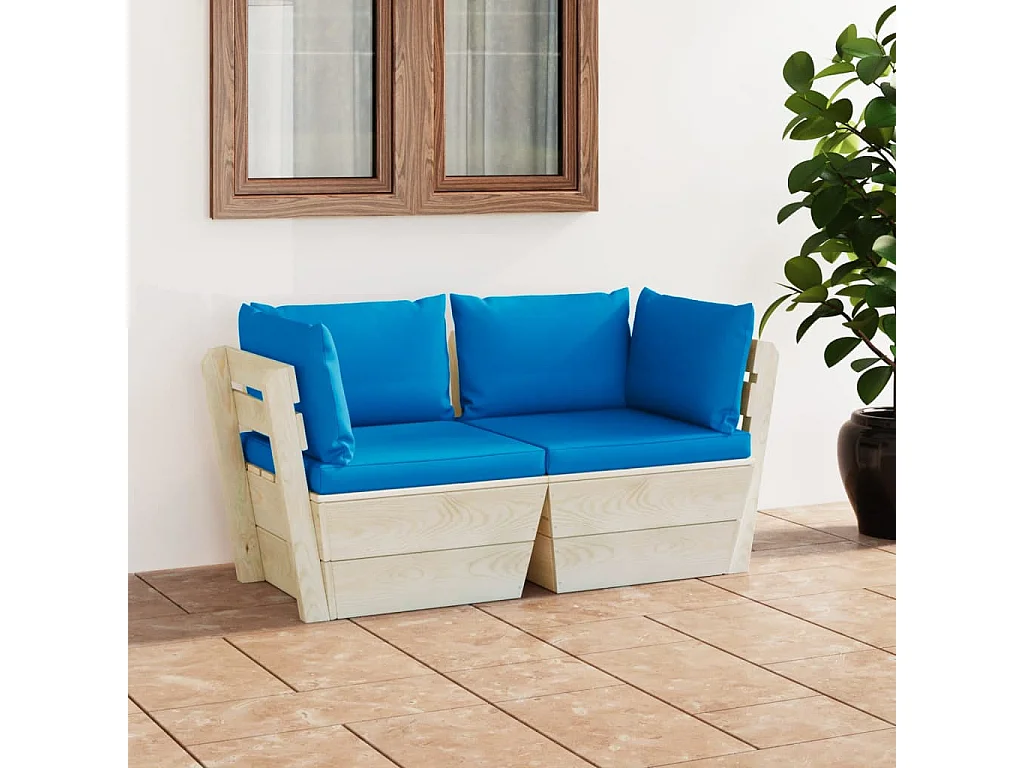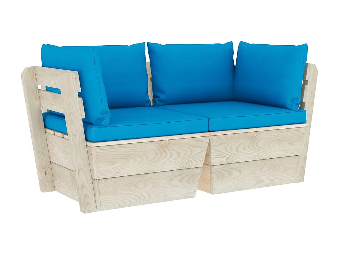 Sofá paletes 2 lugares p/ jardim c/ almofadões madeira de abeto
