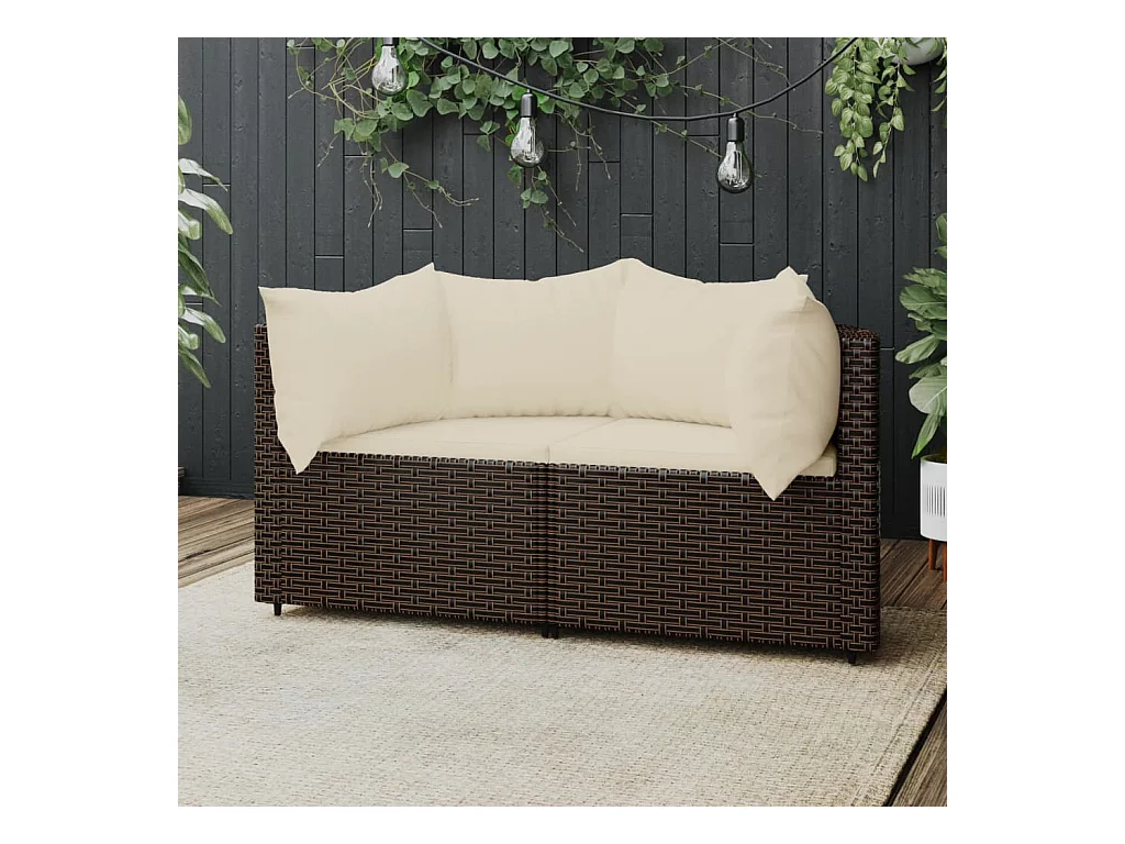 Sofás de canto para jardim com almofadões 2pcs vime PE castanho PT283214