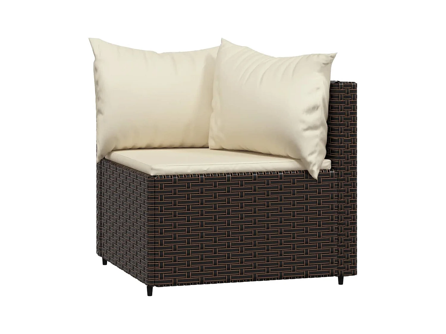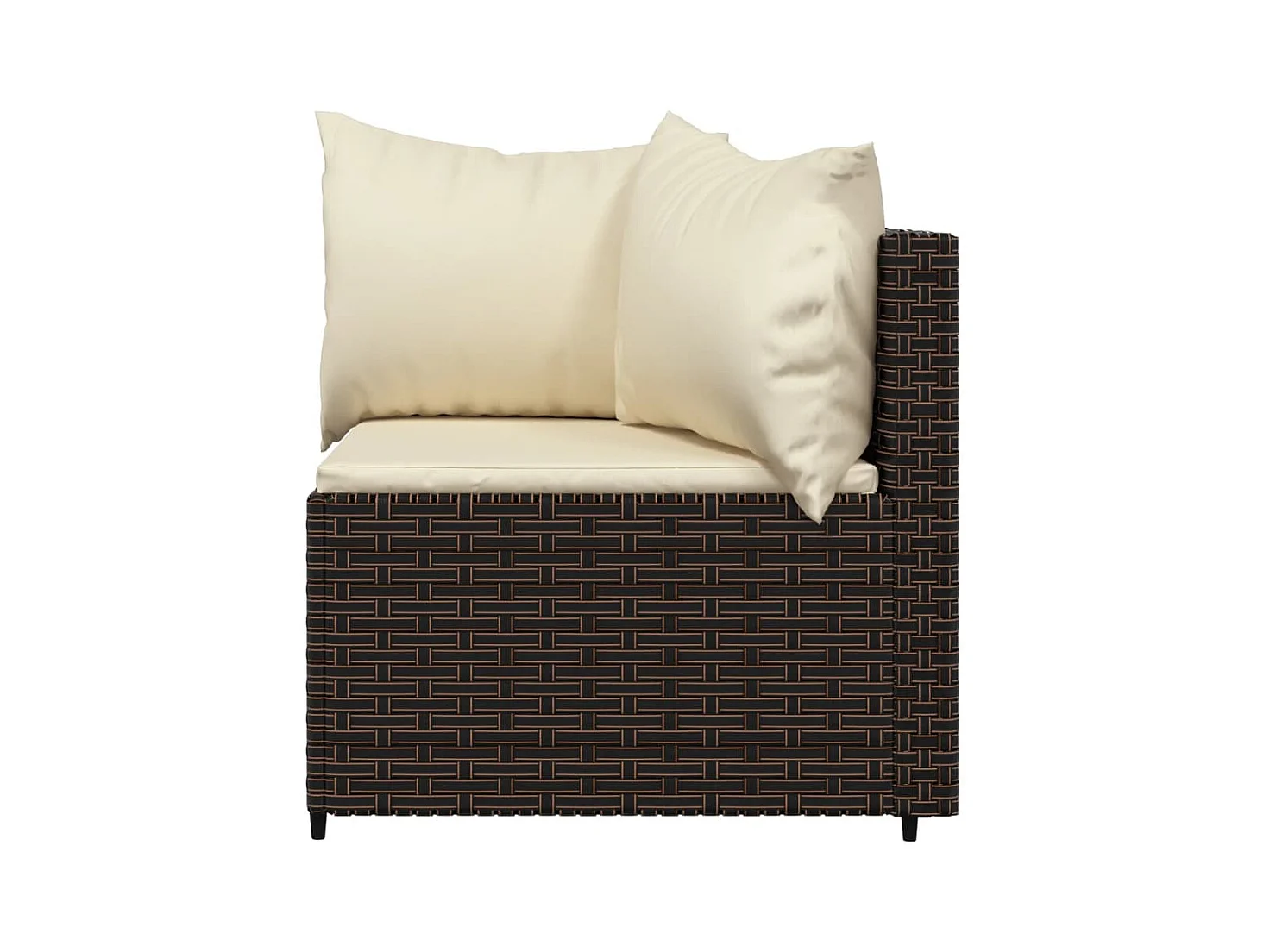 Sofá de canto para jardim com almofadões vime PE castanho PT736621