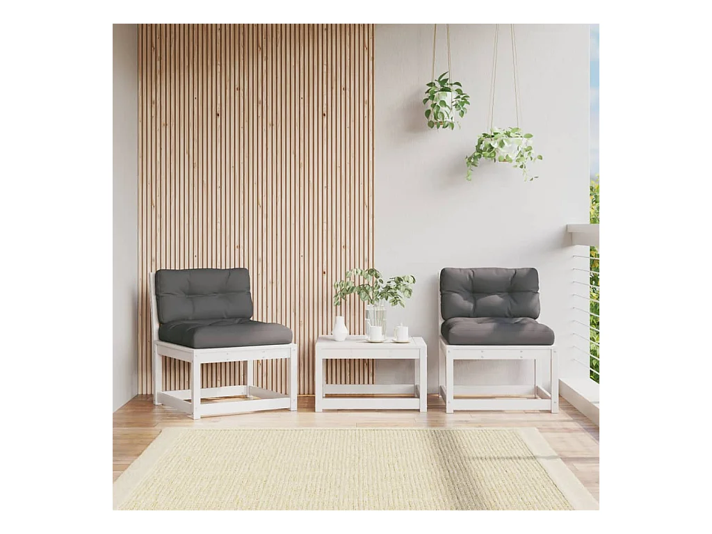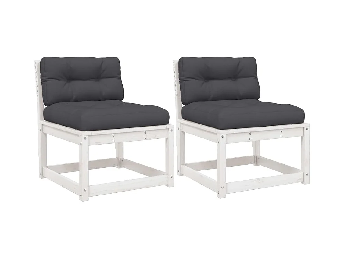 Sofás de jardim com almofadas 2 unidades de madeira de pinho maciça branca