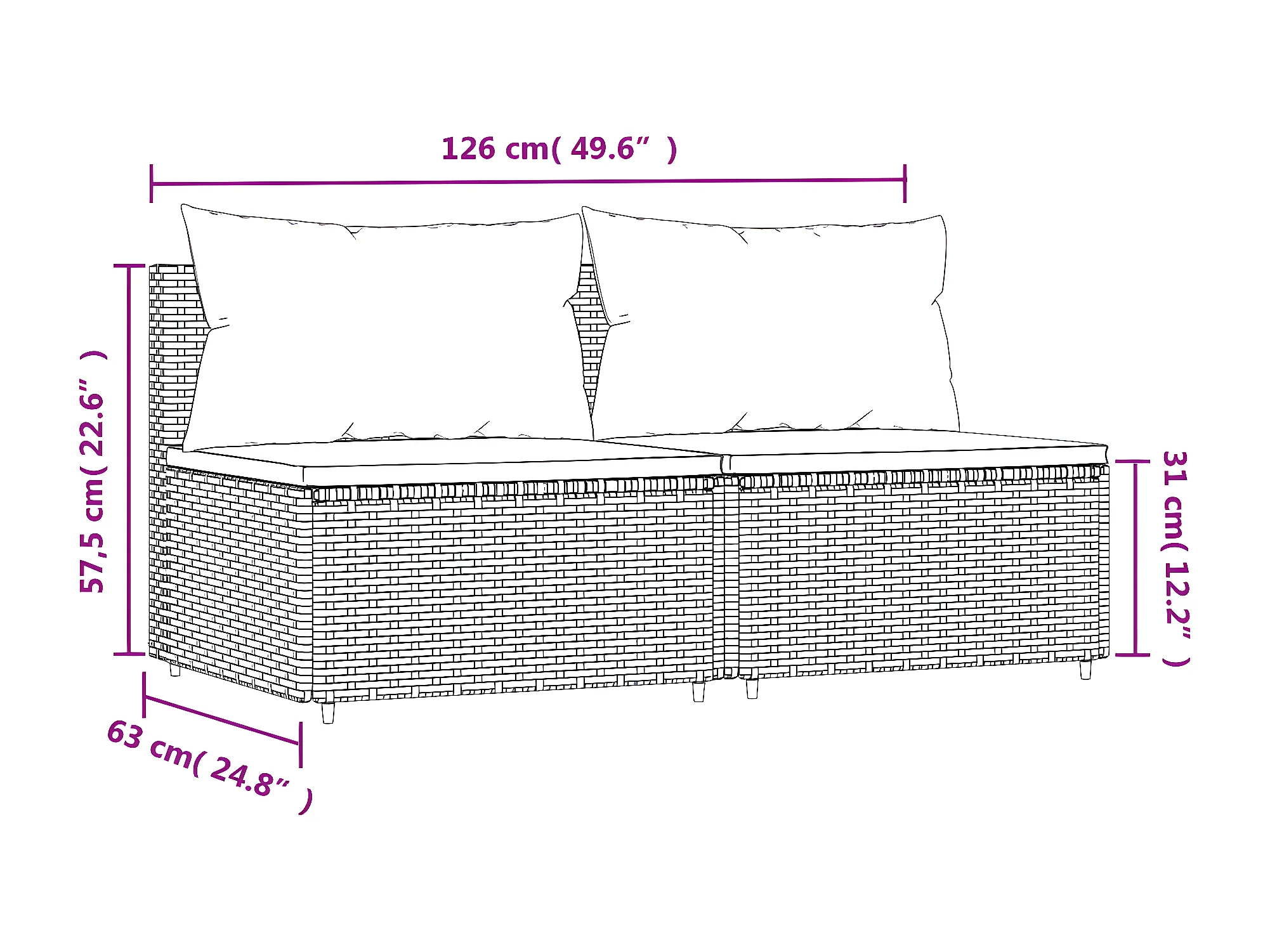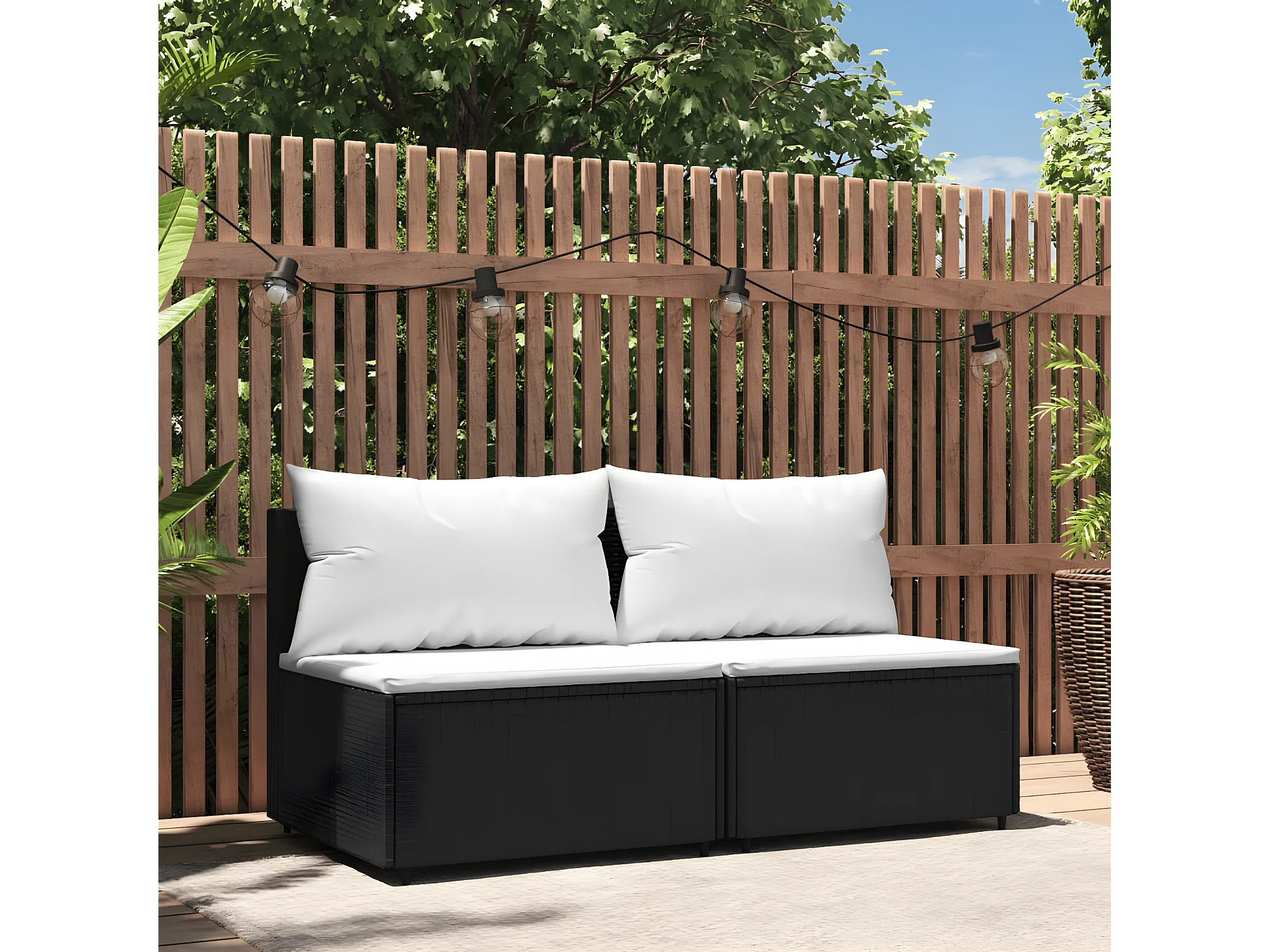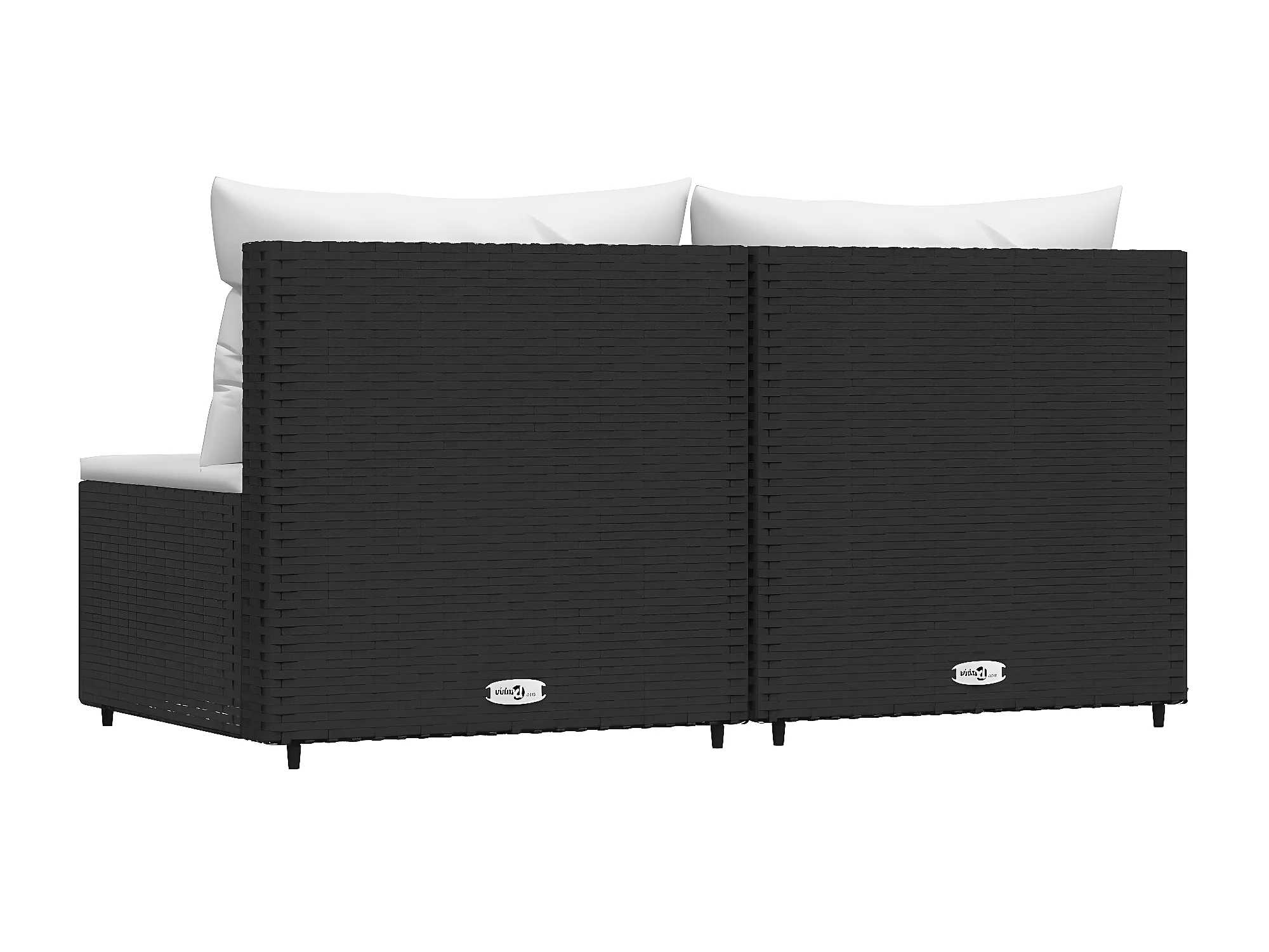 Sofás e almofadas centrais de jardim 2 unidades de vime de resina preta