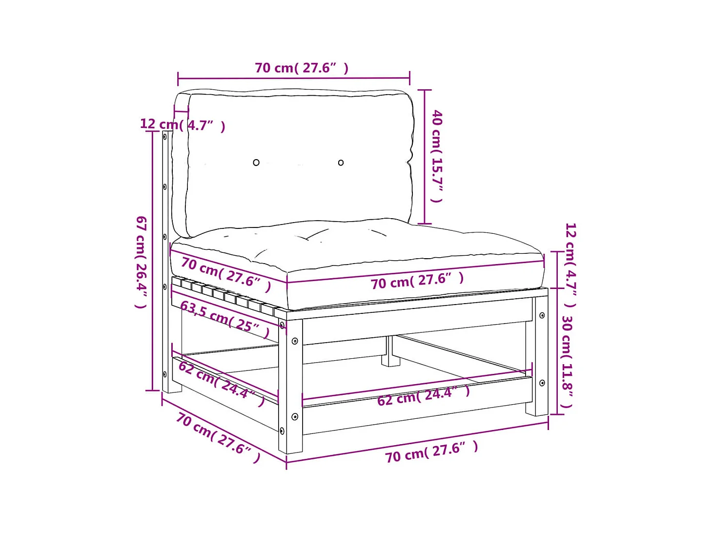 Sofás de jardim sem almofadas de braços 2 unidades de madeira maciça de pinho