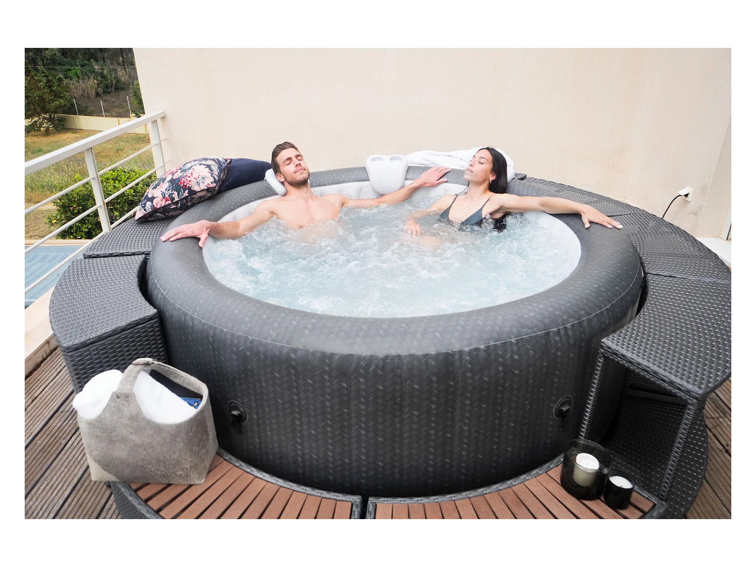 Spa insuflável redondo para 6 pessoas MINORCA - Relaxamento em família ou com amigos, 138 jatos, aquecimento rápido a 40°C